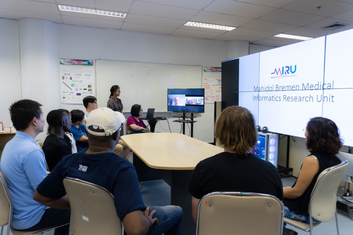 ในโอกาสนี้ Dr. Myat Su Yin และทีมนักศึกษา ได้แนะนำห้องปฏิบัติการวิจัย Mahidol-Bremen Medical Informatics Research Unit (MIRU Lab) รวมถึงนำเสนอผลงานวิจัยของ MIRU Lab เพื่อแลกเปลี่ยนความรู้และสร้างโอกาสในการต่อยอดความร่วมมือทางวิชาการในอนาคต