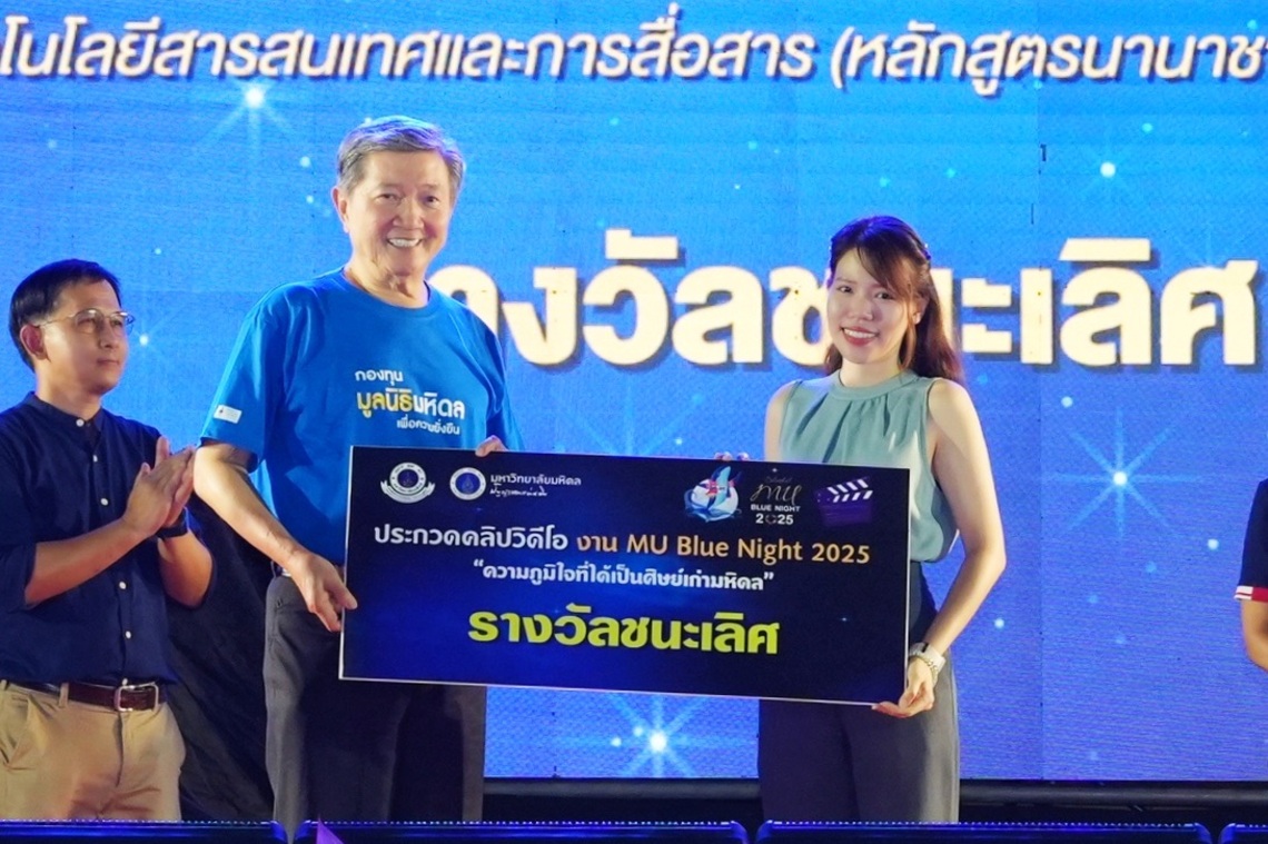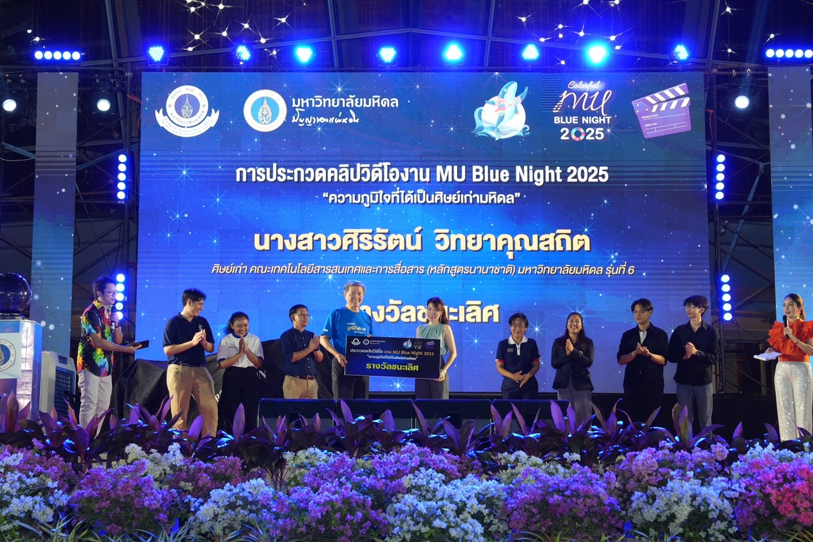 คณะเทคโนโลยีสารสนเทศและการสื่อสาร มหาวิทยาลัยมหิดล (ICT Mahidol) ขอแสดงความยินดีกับคุณศิริรัตน์ วิทยาคุณสถิต นักวิชาการโสตทัศนศึกษา งานโสตและเทคโนโลยีสื่อการศึกษา ซึ่งเป็นศิษย์เก่า ICT รุ่น 6 ในโอกาสที่คว้ารางวัลชนะเลิศจากการประกวดคลิปวิดีโองาน MU Blue Night 2025 ภายใต้หัวข้อ “ความภูมิใจที่ได้เป็นศิษย์เก่ามหิดล” ซึ่งประกาศผลไปเมื่อวันที่ 2 มีนาคม 2568 ภายในงาน MU Blue Night 2025 “คืนสู่เหย้า เรามหิดล ครั้งที่ 8” โดยได้รับเกียรติจาก ศาสตราจารย์คลินิกเกียรติคุณ นายแพทย์ปิยะสกล สกลสัตยาทร นายกสภามหาวิทยาลัยมหิดล เป็นผู้มอบรางวัล ณ ลานหน้าหอประชุมมหิดลสิทธาคาร มหาวิทยาลัยมหิดล ศาลายา