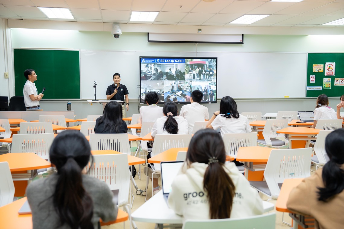 ในโอกาสนี้ นักศึกษารุ่นพี่ชั้นปีที่ 4 ที่เข้าร่วมโครงการฝึกประสบการณ์วิชาชีพด้าน ICT ประจำปีการศึกษา 2566 ณ Nara Institute of Science and Technology (NAIST) ได้แก่ นายธนัท พิชิตพันธ์พงศ์ และ นางสาวสุชาวภักดิ์ การเจริญดี ยังได้เข้าร่วมแบ่งปันประสบการณ์ในการทำโครงงานวิจัย และการใช้ชีวิตระหว่างฝึกประสบการณ์วิชาชีพด้าน ICT อีกด้วย