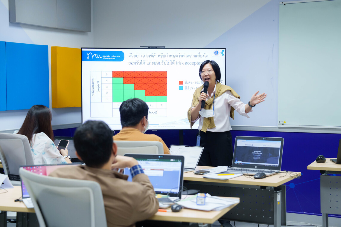 วันที่ 6 – 7 มิถุนายน 2567 คณะเทคโนโลยีสารสนเทศและการสื่อสาร มหาวิทยาลัยมหิดล (ICT Mahidol) จัดโครงการอบรมเชิงปฏิบัติการหลักสูตร “การจัดการความมั่นคงปลอดภัยสารสนเทศด้วยมาตรฐาน ISO 27001: 2022” โดยได้รับเกียรติจาก ดร. อัษฎารัตน์ คูรัตน์ ผู้ช่วยคณบดีฝ่ายการจัดการความเสี่ยงและความมั่นคงทางไซเบอร์ ดร. วุฒิชาติ แสวงผล ผู้ช่วยคณบดีฝ่ายวิจัย และ ผศ.ดร. ธันวดี สุเนตนันท์ อาจารย์ประจำกลุ่มวิชาวิทยาการคอมพิวเตอร์ และกลุ่มวิจัยวิศวกรรมซอฟต์แวร์และการวิเคราะห์ธุรกิจ (Software Engineering and Business Analytics Research Clusters (SEBA)) ร่วมเป็นวิทยากรให้ความรู้เกี่ยวกับมาตรฐาน ISO/IEC 27001:2022 และ ISO/IEC 27002:2022 ซึ่งเป็นมาตรฐานสากลสำหรับระบบจัดการความมั่นคงปลอดภัยสารสนเทศ (ISMS) ที่ได้รับการปรับปรุงล่าสุดเมื่อปี พ.ศ. 2565 ให้แก่ผู้สนใจ ณ ห้องประชุม A2 ชั้น 1 คณะ ICT มหาวิทยาลัยมหิดล ศาลายา