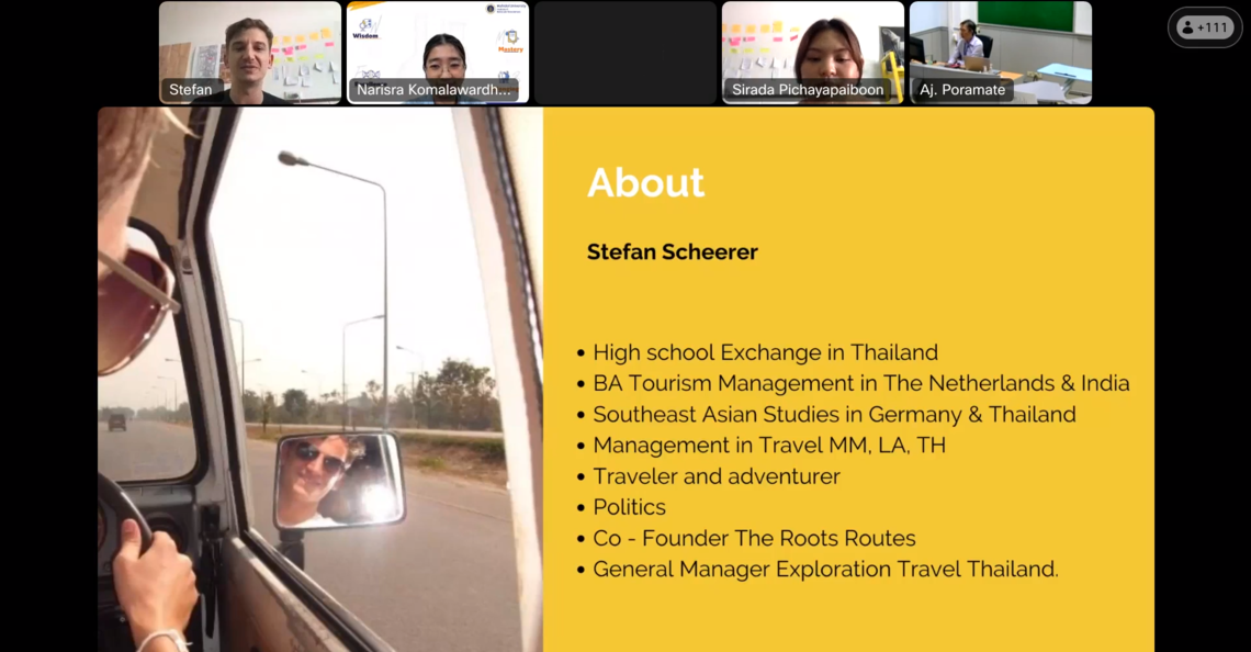 วันที่ 21 มกราคม 2567 คณะเทคโนโลยีสารสนเทศและการสื่อสาร มหาวิทยาลัยมหิดล (ICT Mahidol) นำโดย ดร. นริศรา โกมลวรรธนะ หัวหน้าศูนย์วิจัยและพัฒนาอุปกรณ์ชีวการแพทย์ สถาบันชีววิทยาศาสตร์โมเลกุล มหาวิทยาลัยมหิดล และ ดร. ปรเมษฐ์ ธาราศักดิ์ อาจารย์ประจำสถาบันนวัตกรรมการเรียนรู้ มหาวิทยาลัยมหิดล ซึ่งเป็นอาจารย์ประจำรายวิชา ทสคพ126 ความเป็นผู้ประกอบการขั้นแนะนำ (ITCS126 Introduction to Entrepreneurship) จัดบรรยายพิเศษในหัวข้อ “Case study of IT Entrepreneur” โดยได้รับเกียรติจากคุณศิรดา พิชญไพบูลย์ ผู้ก่อตั้ง และ คุณ Stefan Scheerer ผู้ร่วมก่อตั้ง และผู้อำนวยการฝ่ายพาณิชย์ บริษัท เดอะ รูตส์ รูทส์ จำกัด เป็นวิทยากรถ่ายทอดความรู้เกี่ยวกับผู้ประกอบการด้าน IT และกรณีศึกษาจากผู้ประกอบการ ให้แก่นักศึกษาชั้นปีที่ 1 หลักสูตรวิทยาศาสตรบัณฑิต สาขาวิชาเทคโนโลยีสารสนเทศและการสื่อสาร (ICT หลักสูตรนานาชาติ) ในรูปแบบออนไลน์ผ่านโปรแกรม Webex Meetings