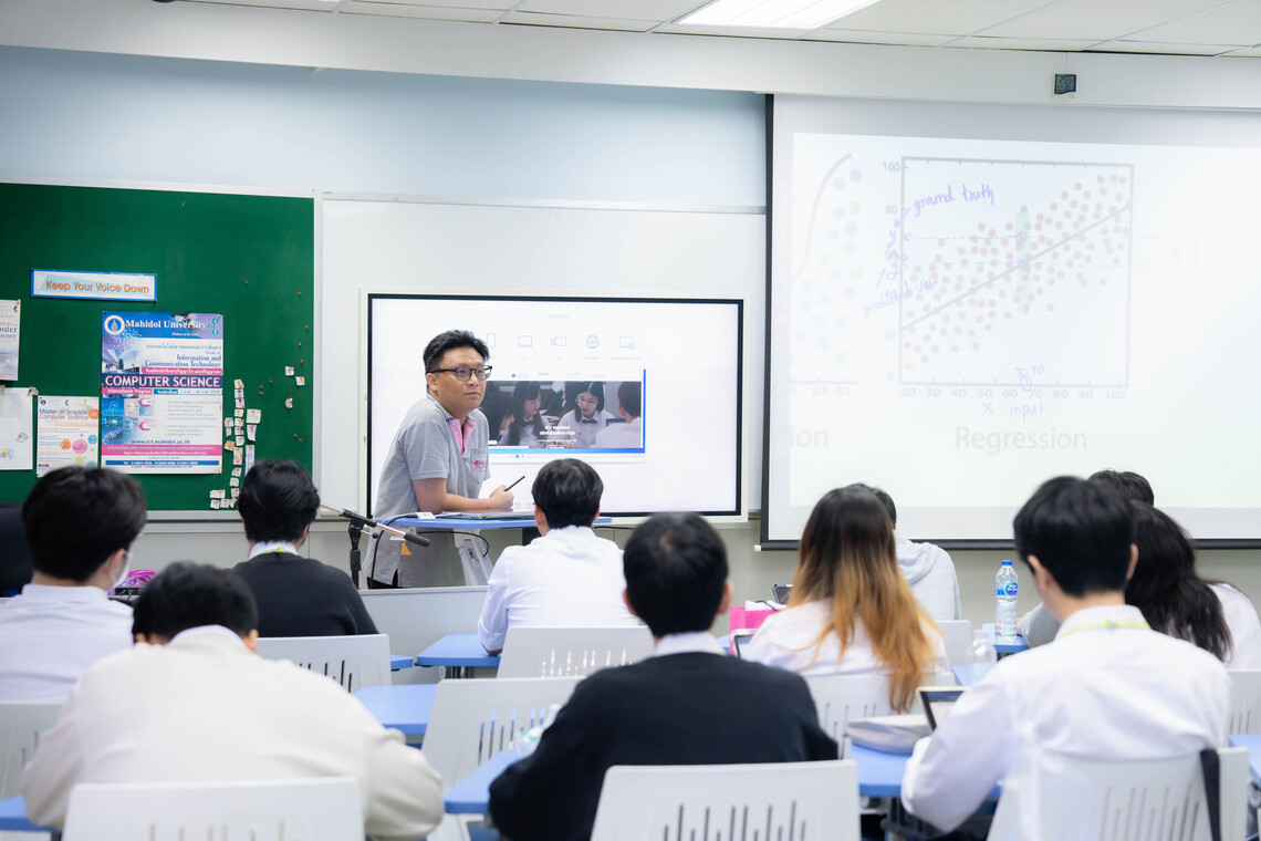 วันที่ 9 และ 11 กันยายน 2567 คณะเทคโนโลยีสารสนเทศและการสื่อสาร มหาวิทยาลัยมหิดล (ICT Mahidol) นำโดย ผศ.ดร. ธนพล นรเสฏฐ์ ผู้ช่วยคณบดีฝ่ายการศึกษา ซึ่งเป็นอาจารย์ประจำรายวิชา ทสคพ 451 ปัญญาประดิษฐ์ (ITCS451 Artificial Intelligence) จัดบรรยายพิเศษในหัวข้อ “Introduction to Classification Algorithms” โดยได้รับเกียรติจากคุณปพนธีร์ แย้มโชติ นักศึกษาหลักสูตรปรัชญาดุษฎีบัณฑิต สาขาวิชาวิทยาการคอมพิวเตอร์ คณะ ICT เป็นวิทยากรถ่ายทอดความรู้เกี่ยวกับการจำแนกหมวดหมู่ (Classification Algorithms) ในการเรียนรู้ของเครื่อง (Machine Learning) ซึ่งเป็นส่วนหนึ่งของการสอนให้คอมพิวเตอร์สามารถหาคำตอบได้ด้วยตัวเอง (Supervised Learning) ให้แก่นักศึกษาหลักสูตรวิทยาศาสตรบัณฑิต สาขาวิชาเทคโนโลยีสารสนเทศและการสื่อสาร (ICT หลักสูตรนานาชาติ) ชั้นปีที่ 3 ณ ห้อง IT323 ชั้น 3 คณะ ICT มหาวิทยาลัยมหิดล ศาลายา