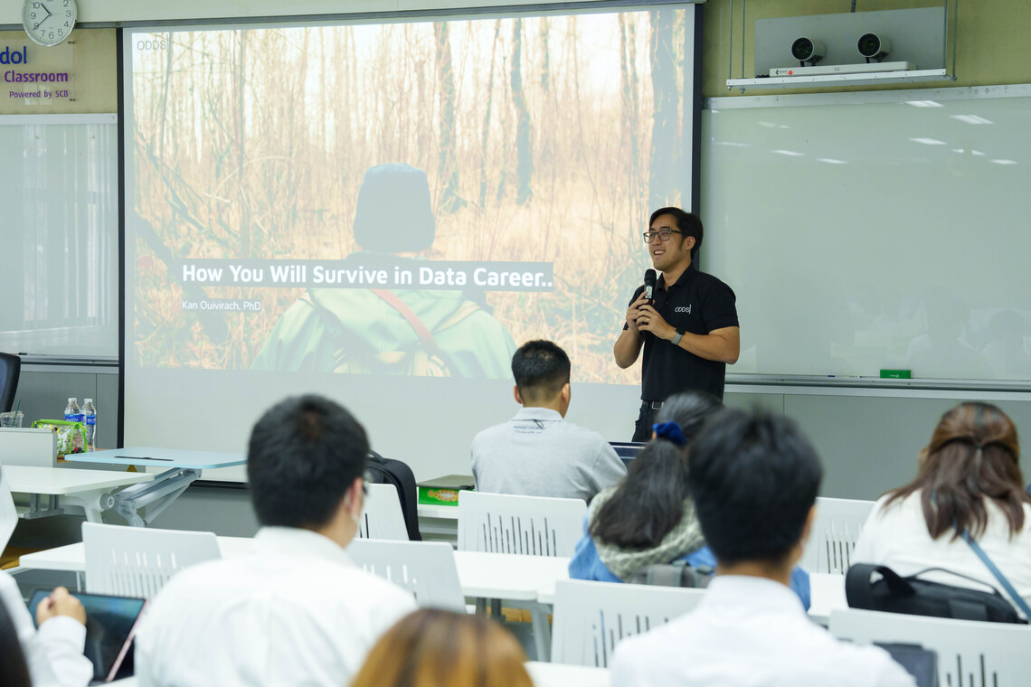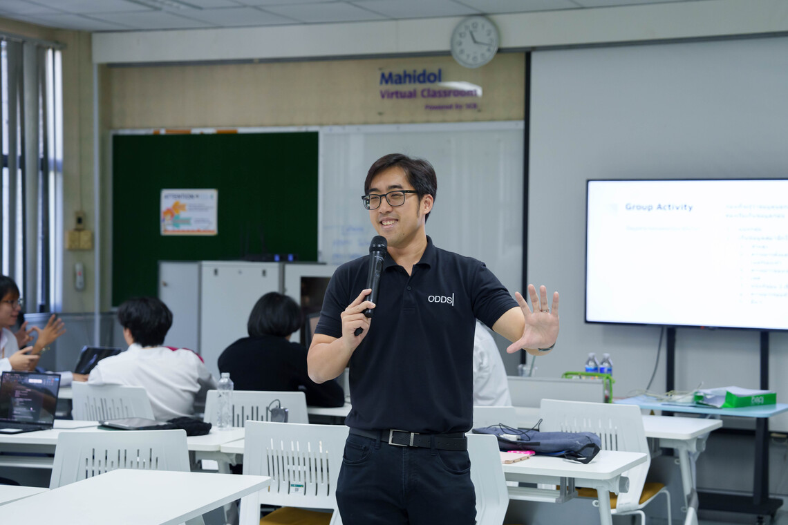 วันที่ 18 มีนาคม 2567 คณะเทคโนโลยีสารสนเทศและการสื่อสาร มหาวิทยาลัยมหิดล (ICT Mahidol) นำโดย ผู้ช่วยศาสตราจารย์ ดร. ฐิตินันท์ ตันติธรรม และ ดร. ชัยยงค์ รักขิตเวชสกุล อาจารย์ประจำรายวิชา ทสวด 101 โจทย์และประสบการณ์ทางอุตสาหกรรม 1 (ITDS101 Industry Problems and Experiences 1) จัดบรรยายพิเศษในหัวข้อ “Data Science and Data Engineering Career” โดยได้รับเกียรติจาก คุณกานต์ อุ่ยวิรัช Data Product Developer & Technical Coach จาก บริษัท ออด-อี (ประเทศไทย) จำกัด เป็นวิทยากรถ่ายทอดความรู้ และประสบการณ์เกี่ยวกับการทำงานด้าน Data Science และด้าน Data Engineering ให้แก่นักศึกษาชั้นปีที่ 1 หลักสูตรวิทยาศาสตรบัณฑิต สาขาวิชาวิทยาการและเทคโนโลยีดิจิทัล (DST หลักสูตรไทย) ณ ห้อง IT204 ชั้น 2 คณะ ICT มหาวิทยาลัยมหิดล ศาลายา