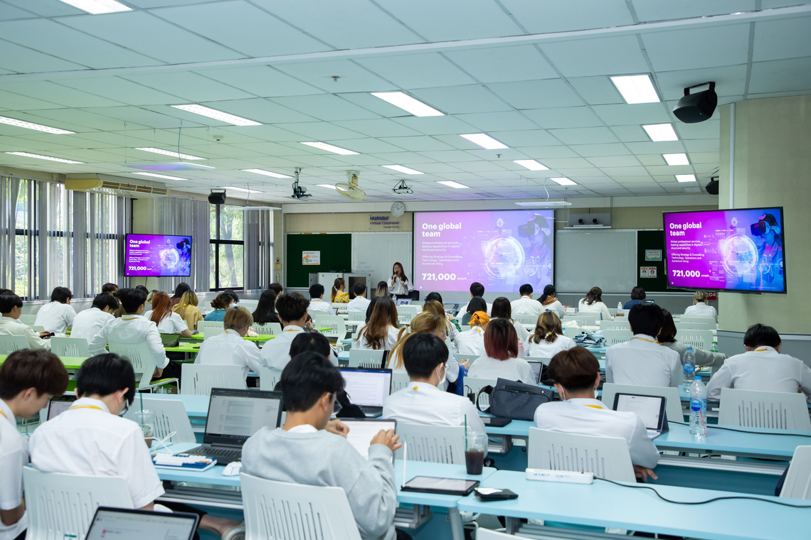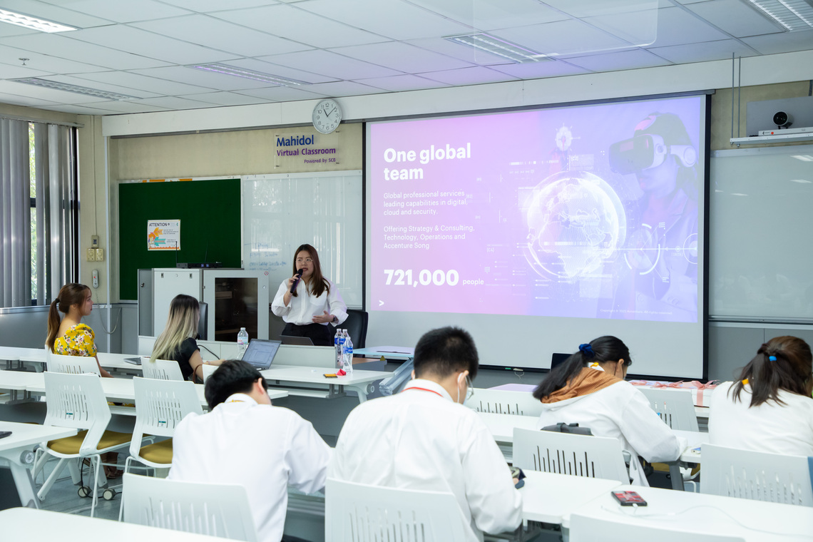 วันที่ 22 มกราคม 2567 คณะเทคโนโลยีสารสนเทศและการสื่อสาร มหาวิทยาลัยมหิดล (ICT Mahidol) นำโดย ผู้ช่วยศาสตราจารย์ ดร. ฐิตินันท์ ตันติธรรม และ ดร. ชัยยงค์ รักขิตเวชสกุล อาจารย์ประจำรายวิชา ทสวด 101 โจทย์และประสบการณ์ทางอุตสาหกรรม 1 (ITDS101 Industry Problems and Experiences 1) จัดบรรยายพิเศษในหัวข้อ “Life as Software Engineer” โดยได้รับเกียรติจากคุณสมหฤทัย วิทยาธาราธร ตำแหน่ง Application Developer คุณ ธาริน จันทรจตุรงค์ Human Resources Partner และคุณ เจนจิรา เหล่าบัวบาน Recruiting Analyst บริษัท เอคเซนเชอร์ ประเทศไทย เป็นวิทยากรถ่ายทอดความรู้และประสบการณ์เกี่ยวกับอาชีพ Software Engineer ให้แก่นักศึกษาชั้นปีที่ 1 หลักสูตรวิทยาศาสตรบัณฑิต สาขาวิชาวิทยาการและเทคโนโลยีดิจิทัล (DST หลักสูตรไทย) ณ ห้อง IT204 ชั้น 2 คณะ ICT มหาวิทยาลัยมหิดล ศาลายา