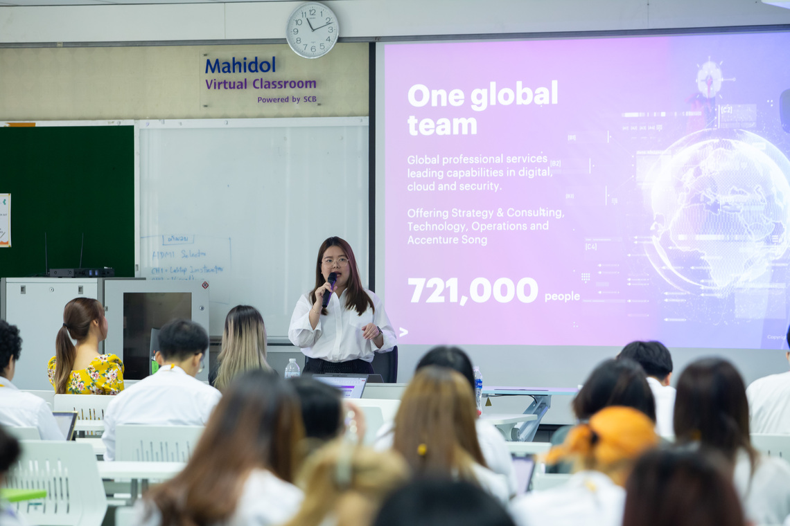 วันที่ 22 มกราคม 2567 คณะเทคโนโลยีสารสนเทศและการสื่อสาร มหาวิทยาลัยมหิดล (ICT Mahidol) นำโดย ผู้ช่วยศาสตราจารย์ ดร. ฐิตินันท์ ตันติธรรม และ ดร. ชัยยงค์ รักขิตเวชสกุล อาจารย์ประจำรายวิชา ทสวด 101 โจทย์และประสบการณ์ทางอุตสาหกรรม 1 (ITDS101 Industry Problems and Experiences 1) จัดบรรยายพิเศษในหัวข้อ “Life as Software Engineer” โดยได้รับเกียรติจากคุณสมหฤทัย วิทยาธาราธร ตำแหน่ง Application Developer คุณ ธาริน จันทรจตุรงค์ Human Resources Partner และคุณ เจนจิรา เหล่าบัวบาน Recruiting Analyst บริษัท เอคเซนเชอร์ ประเทศไทย เป็นวิทยากรถ่ายทอดความรู้และประสบการณ์เกี่ยวกับอาชีพ Software Engineer ให้แก่นักศึกษาชั้นปีที่ 1 หลักสูตรวิทยาศาสตรบัณฑิต สาขาวิชาวิทยาการและเทคโนโลยีดิจิทัล (DST หลักสูตรไทย) ณ ห้อง IT204 ชั้น 2 คณะ ICT มหาวิทยาลัยมหิดล ศาลายา