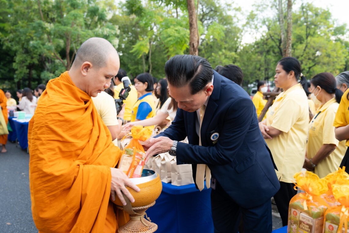 วันที่ 8 ตุลาคม 2568 ดร.พัฒนศักดิ์ มงคลวัฒน์ คณบดี คณะเทคโนโลยีสารสนเทศและการสื่อสาร มหาวิทยาลัยมหิดล (ICT Mahidol) พร้อมด้วยคณะผู้บริหาร คณาจารย์ และบุคลากร เข้าร่วมพิธีทำบุญตักบาตรถวายเป็นพระราชกุศล ในกิจกรรมวันนวมินทรมหาราช เนื่องในวันคล้ายวันสวรรคต พระบาทสมเด็จพระบรมชนกาธิเบศร มหาภูมิพลอดุลยเดชมหาราช บรมนาถบพิตร ซึ่งตรงกับวันที่ 13 ตุลาคม 2568 ณ อาคารสำนักงานอธิการบดี มหาวิทยาลัยมหิดล ศาลายา