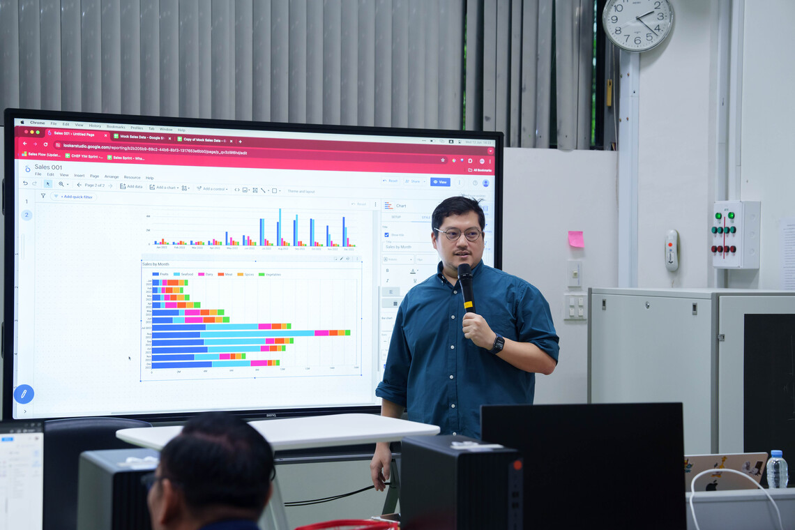 โครงการอบรมเชิงปฏิบัติการหลักสูตร “Unlocking Data Insight: Looker Studio 101 workshop” มีวัตถุประสงค์เพื่อให้ผู้เข้าอบรมได้รับความรู้เกี่ยวกับการใช้โปรแกรม Google Looker Studio ในเบื้องต้น อาทิ ภาพรวมความสามารถของ Google Looker Studio การสร้าง Dashboard โดยใช้กราฟ และตารางรูปแบบต่างๆ รวมถึงการผสมข้อมูลจากหลายแหล่งข้อมูล ให้เป็นข้อมูลชุดเดียวกัน (Data Blending) ซึ่งจะช่วยให้ผู้เข้าอบรมสามารถนำเสนอชุดข้อมูลต่างๆ ได้ดียิ่งขึ้น ตลอดจนสามารถนำความรู้จากการเรียนไปประยุกต์ใช้ในการปฏิบัติงานของตนเองได้