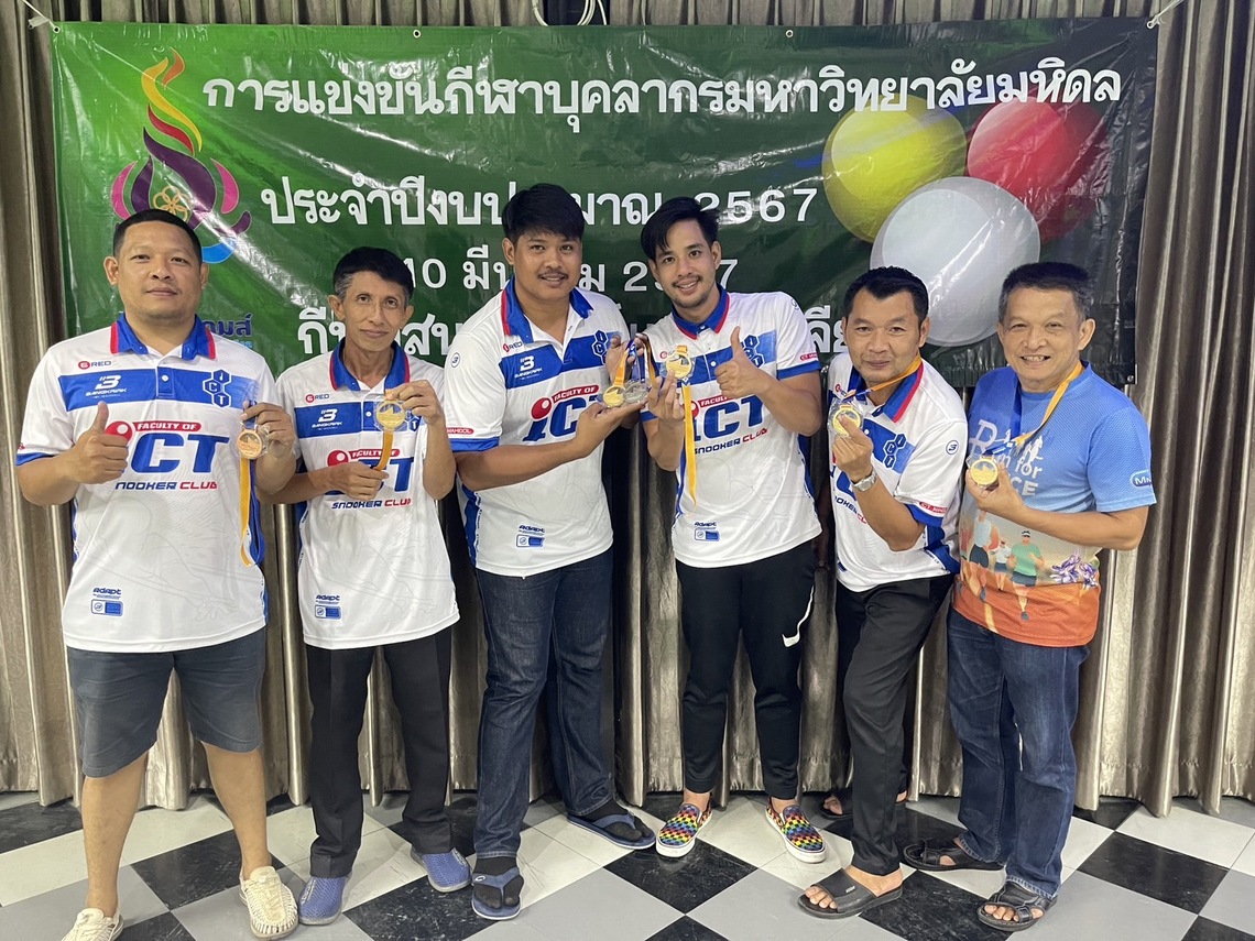 คณะเทคโนโลยีสารสนเทศและการสื่อสาร มหาวิทยาลัยมหิดล (ICT Mahidol) ขอแสดงความยินดีกับบุคลากรของคณะฯ ในโอกาสคว้า 12 เหรียญทอง 4 เหรียญเงิน 4 เหรียญทองแดง จากการแข่งขันกีฬาบุคลากรมหาวิทยาลัยมหิดล “มหิดลเกมส์” ประจำปี 2567 ระหว่างวันที่ 14 กุมภาพันธ์ 2567 – วันที่ 15 มีนาคม 2567 โดยบุคลากรที่ได้รับรางวัล มีดังนี้