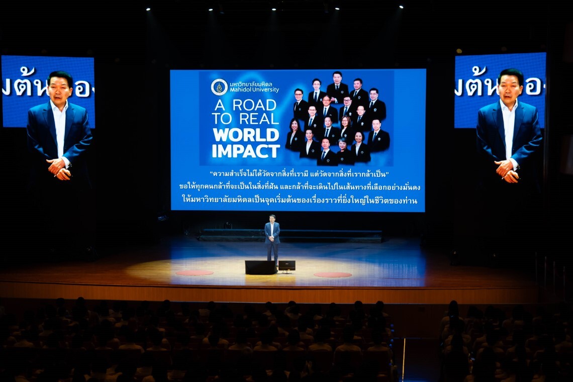 วันที่ 29 กรกฎาคม 2568 ดร.พัฒนศักดิ์ มงคลวัฒน์ คณบดีคณะเทคโนโลยีสารสนเทศและการสื่อสาร มหาวิทยาลัยมหิดล (ICT Mahidol) พร้อมด้วยนักศึกษาใหม่ชั้นปีที่ 1 ปีการศึกษา 2568 หลักสูตรวิทยาศาสตรบัณฑิต สาขาวิชาเทคโนโลยีสารสนเทศและการสื่อสาร (ICT หลักสูตรนานาชาติ) และสาขาวิชาวิทยาการและเทคโนโลยีดิจิทัล (DST หลักสูตรไทย) เข้าร่วมพิธีปฐมนิเทศนักศึกษาใหม่ มหาวิทยาลัยมหิดล ประจำปีการศึกษา 2568 “Be your Own Firework” ณ มหิดลสิทธาคาร มหาวิทยาลัยมหิดล ศาลายา โดยได้รับเกียรติจากศาสตราจารย์ นายแพทย์ปิยะมิตร ศรีธรา อธิการบดี มหาวิทยาลัยมหิดล กล่าวปฐมโอวาทแก่นักศึกษามหาวิทยาลัยมหิดล รุ่นที่ 136 พร้อมด้วยทีมผู้บริหารจากมหาวิทยาลัยมหิดล และคณะผู้บริหารจากส่วนงานต่าง ๆ กล่าวต้อนรับนักศึกษาใหม่เข้าสู่รั้วมหาวิทยาลัยมหิดลอย่างเป็นทางการ พร้อมทั้งสร้างแรงบันดาลใจในการเริ่มต้นใช้ชีวิตการเรียนในระดับอุดมศึกษา
