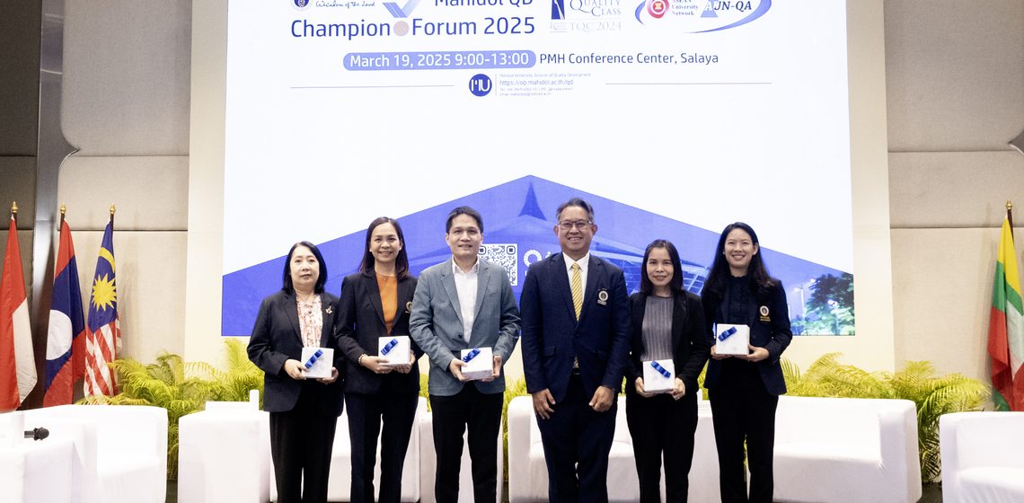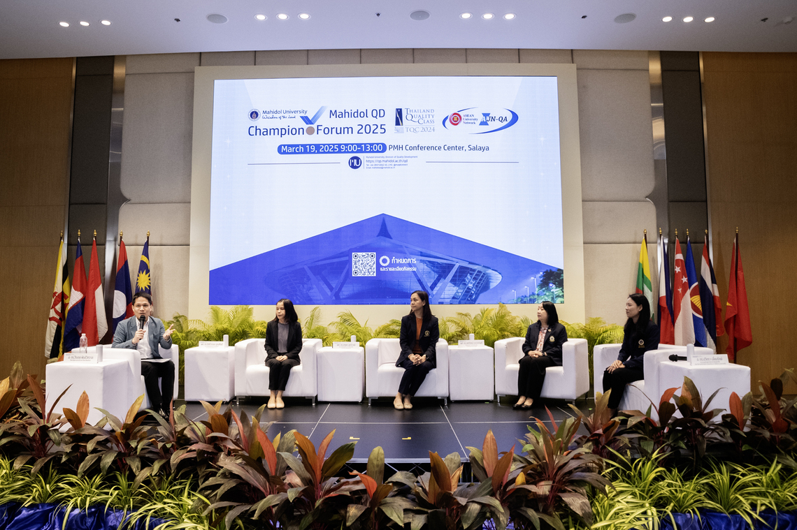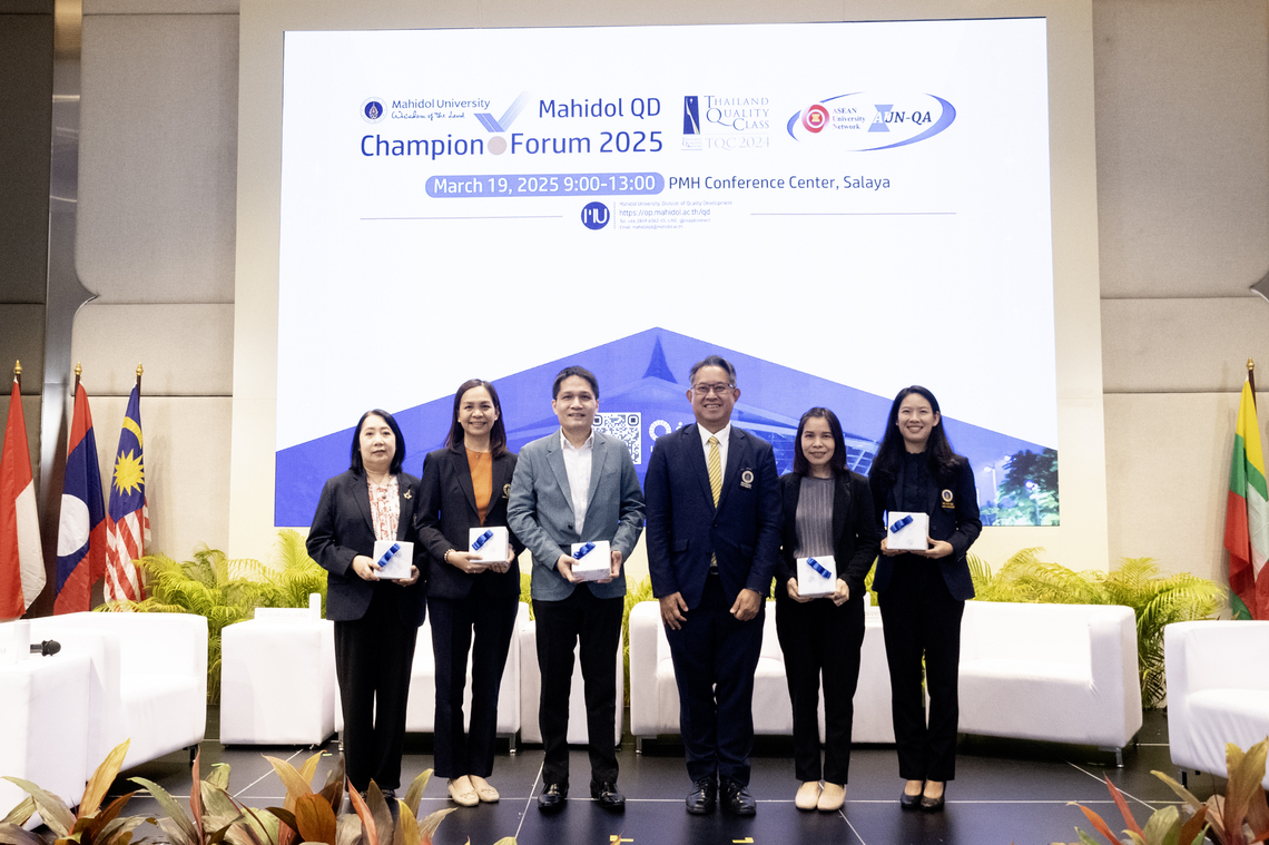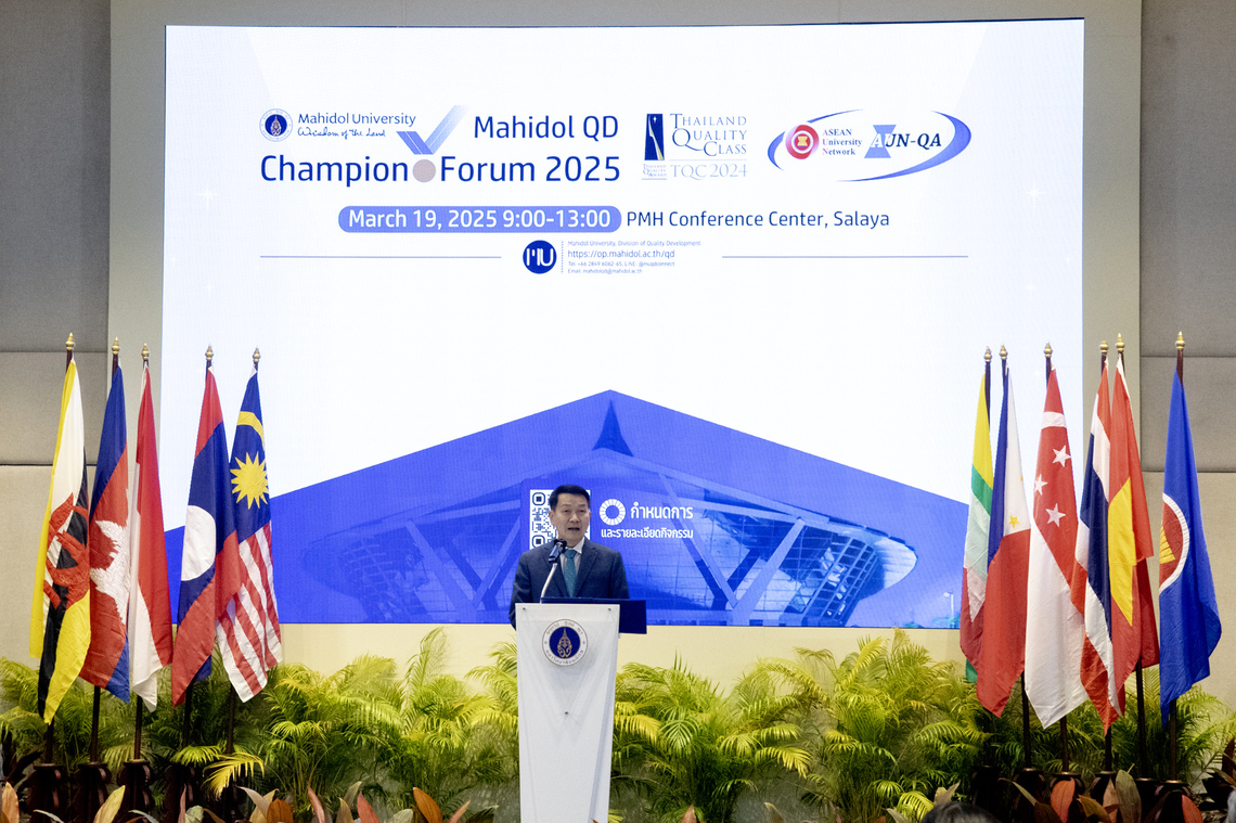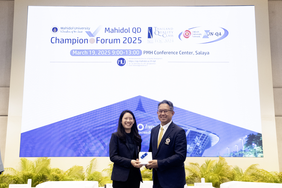 กิจกรรม “Mahidol QD Champion Forum 2025” เป็นกิจกรรมที่จัดขึ้นโดย กองพัฒนาคุณภาพ มหาวิทยาลัยมหิดล ซึ่งมีวัตถุประสงค์เพื่อให้ประชาคมมหิดลได้เรียนรู้แนวคิด เทคนิค และวิธีการทำงานของผู้นำองค์กร ผู้บริหารของส่วนงาน ประธานหลักสูตร ในการนำเกณฑ์คุณภาพการศึกษาเพื่อการดำเนินการที่เป็นเลิศ (EdPEx) มาใช้ในการพัฒนาศักยภาพของส่วนงาน จนแสดงให้เห็นถึงผลลัพธ์และผลการดำเนินการที่ชัดเจน สามารถต่อยอดไปสู่การรับรางวัลคุณภาพแห่งชาติ (Thailand Quality Award) ประกอบกับหลักสูตรที่นำเกณฑ์มาตรฐานคุณภาพการศึกษาระดับอาเซียน และระดับนานาชาติ มาใช้พัฒนาหลักสูตรให้ผลิตบัณฑิตที่ตอบสนองต่อความต้องการในสังคมอย่างรอบด้าน จนนำไปสู่การรับรองมาตรฐานคุณภาพระดับอาเซียนและระดับนานาชาติ