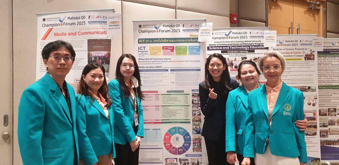 วันที่ 19 มีนาคม 2568 ดร.ปวิตรา เลี่ยมรักษ์ รองคณบดีฝ่ายพัฒนาองค์กรและกิจการพิเศษ และ ประธานหลักสูตรวิทยาศาสตรบัณฑิต สาขาวิชาเทคโนโลยีสารสนเทศและการสื่อสาร (ICT หลักสูตรนานาชาติ) คณะเทคโนโลยีสารสนเทศและการสื่อสาร มหาวิทยาลัยมหิดล (ICT Mahidol) พร้อมด้วยบุคลากร เข้าร่วมกิจกรรม “Mahidol QD Champion Forum 2025” โดยได้รับเกียรติจาก รองศาสตราจารย์ ดร. เภสัชกร สมภพ ประธานธุรารักษ์ รองอธิการบดีฝ่ายแผนกลยุทธ์ พัฒนาคุณภาพและพันธกิจเพื่อสังคม มหาวิทยาลัยมหิดล เป็นผู้กล่าวรายงาน และ ศาสตราจารย์ นายแพทย์ปิยะมิตร ศรีธรา อธิการบดี มหาวิทยาลัยมหิดล เป็นประธานในพิธีกล่าวเปิดงาน พร้อมมอบประกาศนียบัตรให้แก่หลักสูตรที่ผ่านการรับรองคุณภาพการศึกษาระดับหลักสูตรตามเกณฑ์ AUN-QA ในโอกาสนี้ ดร.ปวิตรา เลี่ยมรักษ์ ยังได้เข้าร่วมการเสวนาในหัวข้อ “การพัฒนาหลักสูตรสู่มาตรฐานสากล” ซึ่งเป็นการแลกเปลี่ยนเรียนรู้เกี่ยวกับการตรวจประเมินคุณภาพการศึกษาของหลักสูตรวิทยาศาสตรบัณฑิต สาขาวิชาเทคโนโลยีสารสนเทศและการสื่อสาร (ICT หลักสูตรนานาชาติ) ของคณะ ICT ซึ่งเป็นหลักสูตรที่ได้รับการรับรองในระดับสากลตามมาตรฐานของ ASEAN University Network Quality Assurance (AUN-QA) ระดับ 6 จากคะแนนเต็ม 7 (Examples of Best Practice) ต่อเนื่อง 2 สมัยซ้อน โดยมี ดร.วีรเดช พันธ์วิศวาส อาจารย์ประจำวิทยาลัยนานาชาติ รับหน้าที่เป็นพิธีกรดำเนินรายการ และในโอกาสเดียวกันนี้ คณะฯ ยังได้ร่วมจัดแสดงโปสเตอร์ (Poster Exhibition) ถอดบทเรียนและแลกเปลี่ยนเรียนรู้แนวทางการดำเนินการ ขับเคลื่อนคุณภาพของหลักสูตรตามเกณฑ์ของ AUN-QA และ การพัฒนาองค์กรด้วยเกณฑ์ EdPex ณ ห้องแกรนด์บอลรูม ศูนย์ประชุมและอาคารจอดรถมหิดลสิทธาคาร มหาวิทยาลัยมหิดล ศาลายา