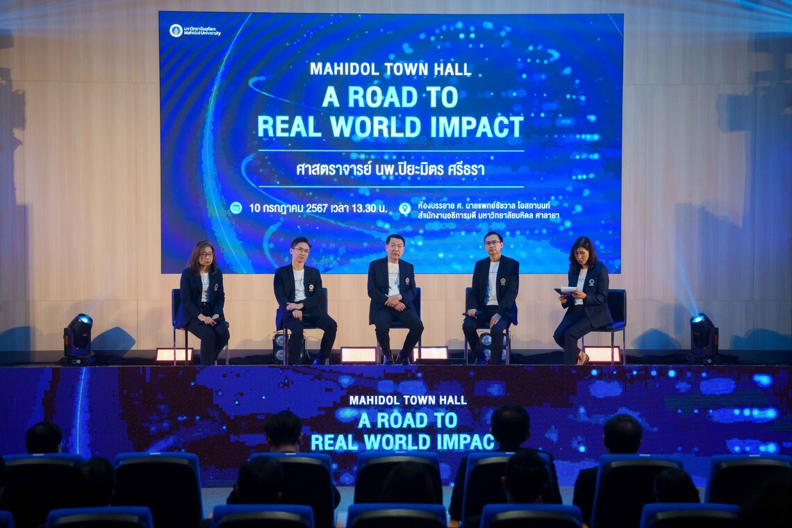 วันที่ 10 กรกฎาคม 2567 ดร. พัฒนศักดิ์ มงคลวัฒน์ คณบดี คณะเทคโนโลยีสารสนเทศและการสื่อสาร มหาวิทยาลัยมหิดล (ICT Mahidol) พร้อมด้วยทีมผู้บริหาร คณาจารย์ และบุคลากร เข้าร่วมกิจกรรม Mahidol Town Hall : A Road To Real World Impact “ทิศทางการบริหารและเป้าหมายการบริหารงานของมหาวิทยาลัยมหิดล” ณ ห้องบรรยาย ศ. นพ. ชัชวาล โอสถานนท์ ชั้น 1 สำนักงานอธิการบดี มหาวิทยาลัยมหิดล ศาลายา