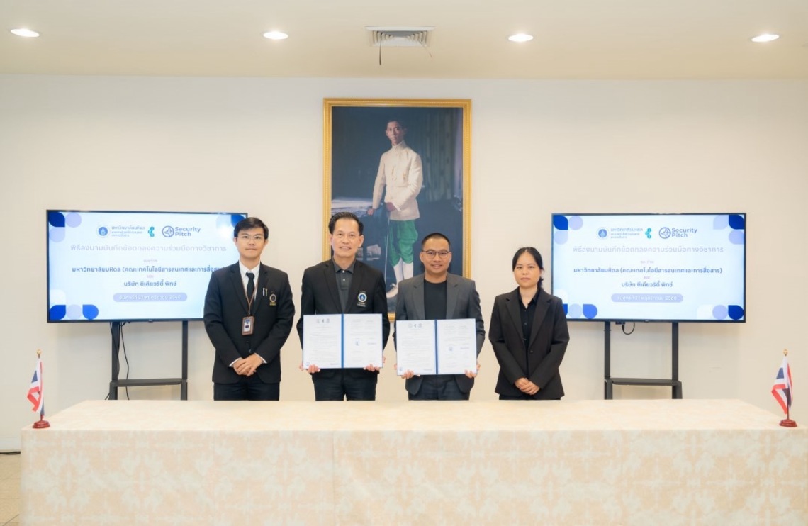 การลงนามบันทึกข้อตกลงความร่วมมือทางวิชาการ (MoU) กับ บริษัท ซีเคียวริตี้ พิทช์ จำกัด มีวัตถุประสงค์เพื่อพัฒนานักศึกษาของคณะ ICT ให้มีความรู้ความสามารถและทักษะในด้านเทคโนโลยีสารสนเทศ ผ่านการเรียนรู้จากประสบการณ์จริงด้วยการทำโครงงานวิจัยระดับปริญญาตรี (Senior Project) ของคณะ ICT หรือการฝึกงานหรือสหกิจศึกษาร่วมกับบริษัทฯ พร้อมเปิดโอกาสให้นักศึกษาที่มีความรู้ความสามารถ ได้พัฒนาต่อยอดความรู้ ความสามารถ และสร้างสรรค์ผลงานวิจัย หรือนวัตกรรมใหม่ๆ อีกทั้งยังมุ่งเน้นการพัฒนาองค์ความรู้เพื่อช่วยส่งเสริมให้นักศึกษาได้พัฒนาความรู้ความสามารถเพิ่มเติม นอกเหนือจากการเรียนรู้ในสถาบันการศึกษา โดยนำความรู้เชิงธุรกิจจากบริษัท มาประยุกต์ใช้ในงานวิจัยเพื่อให้ได้รับประโยชน์ที่สอดคล้องกับความต้องการของตลาดในปัจจุบัน รวมทั้งส่งเสริมความร่วมมือในการวิจัยพัฒนาที่สามารถนำไปใช้ประโยชน์ได้จริงกับหน่วยงานภาคเอกชนของประเทศ ตลอดจนการสร้างความร่วมมือด้านวิชาการ และสร้างความสัมพันธ์อันดีระหว่างหน่วยงานภาคธุรกิจและภาคการศึกษาในการถ่ายทอดเทคโนโลยีสู่การประยุกต์ใช้จริง