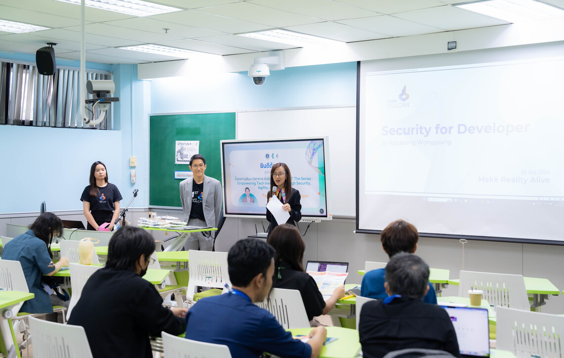 วันที่ 30 ตุลาคม 2567 คณะเทคโนโลยีสารสนเทศและการสื่อสาร มหาวิทยาลัยมหิดล (ICT Mahidol) ร่วมกับ บริษัท บลูบิค วัลแคน จำกัด จัดโครงการสัมมนาวิชาการ “MUICT-AST The Series: Empowering Tech Innovation through Security, Agility, and Design” ในหัวข้อ “Security for Developer” โดยได้รับเกียรติจาก ผศ.ดร. ทิพาจินต์ ไทยพิสุทธิกุล ผู้ช่วยคณบดีฝ่ายบริการวิชาการและถ่ายทอดเทคโนโลยี เป็นผู้กล่าวเปิดโครงการฯ พร้อมด้วย คุณรัฐพงษ์ วงศ์เปียง Technical Consultant Specialist พร้อมด้วย คุณนภัสนันทน์ พงษ์ธนรัชต์ Human Resource Intern จากบริษัท บลูบิค วัลแคน จำกัด เป็นผู้ถ่ายทอดองค์ความรู้เกี่ยวกับความปลอดภัยทางซอฟต์แวร์ (Software Security) ให้แก่คณาจารย์ บุคลากร นักศึกษามหาวิทยาลัยมหิดล และผู้สนใจ ณ ห้อง IT321 ชั้น 3 คณะ ICT มหาวิทยาลัยมหิดล ศาลายา