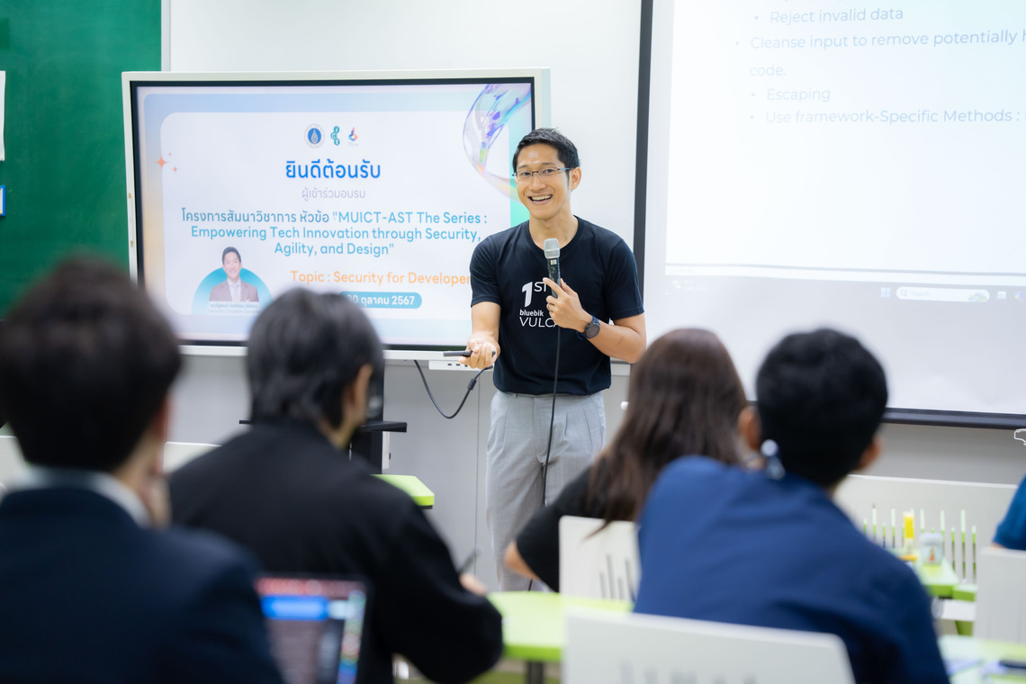 คณะ ICT ม.มหิดล (ICT Mahidol) ร่วมกับ บริษัท บลูบิค วัลแคน จำกัด จัดโครงการสัมมนาวิชาการ “MUICT-AST The Series: Empowering Tech Innovation through Security, Agility, and Design” ในหัวข้อ “Security for Developer”