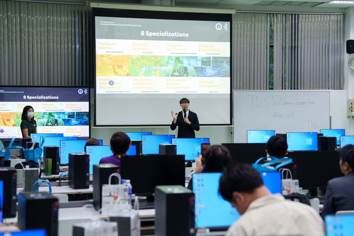 ทั้งนี้ หลังเสร็จสิ้นการอบรม ดร. พิสิฐ ไพรวัฒนา ได้มอบประกาศนียบัตร อีกทั้งยังได้แนะนำหลักสูตรการเรียนการสอนของคณะฯ และข้อมูลเกณฑ์การรับสมัคร ในหลักสูตรวิทยาศาสตรบัณฑิต สาขาวิชาเทคโนโลยีสารสนเทศและการสื่อสาร (ICT หลักสูตรนานาชาติ) และสาขาวิชาวิทยาการและเทคโนโลยีดิจิทัล (DST หลักสูตรไทย) ประจำปีการศึกษา 2568 ให้แก่คณะครูที่เข้าร่วมการอบรมอบรมอีกด้วย