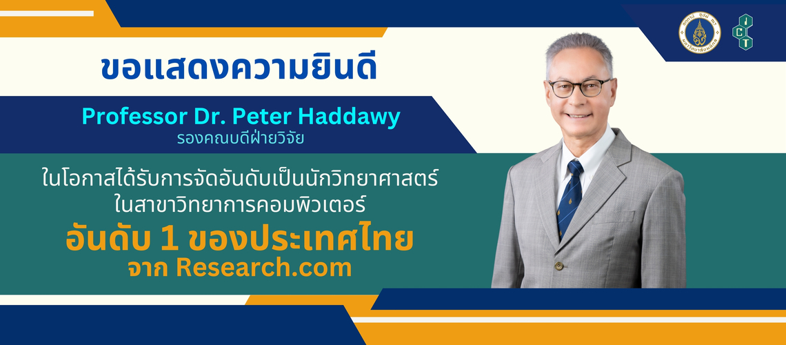 คณะเทคโนโลยีสารสนเทศและการสื่อสาร มหาวิทยาลัยมหิดล (ICT Mahidol) ขอแสดงความยินดีกับ Professor Dr. Peter Haddawy รองคณบดีฝ่ายวิจัย ในโอกาสที่ได้รับการจัดอันดับให้เป็นนักวิทยาศาสตร์ ในสาขาวิทยาการคอมพิวเตอร์ อันดับ 1 ของประเทศไทย และอยู่ในอันดับ 7875 ของโลก โดยเว็บไซต์ Research.com ซึ่งในปีนี้ สถิติอันดับโลก ได้เพิ่มขึ้นจากสถิติของปีที่แล้วมากถึง 1,500 อันดับ
