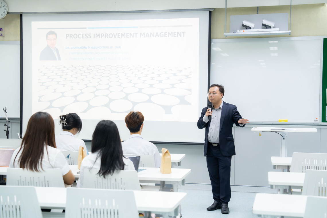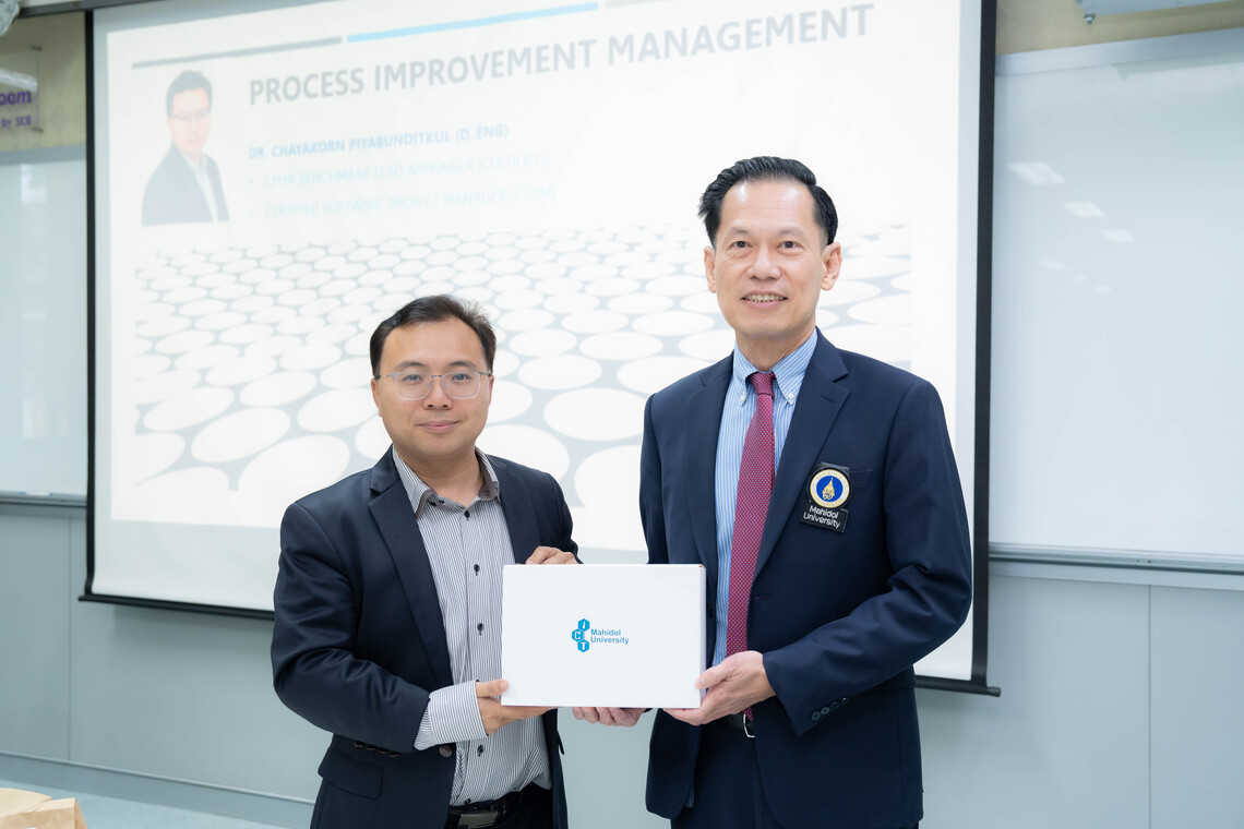 วันที่ 11 กันยายน 2567 คณะเทคโนโลยีสารสนเทศและการสื่อสาร มหาวิทยาลัยมหิดล (ICT Mahidol) ร่วมกับ บริษัท ไอเซ็ม จำกัด จัดโครงการสัมมนาวิชาการเพื่อคนมหิดลให้รู้ทัน Technology ในหัวข้อ “Process Improvement Management” โดยได้รับเกียรติจาก ผศ.ดร. ทิพาจินต์ ไทยพิสุทธิกุล ผู้ช่วยคณบดีฝ่ายบริการวิชาการและถ่ายทอดเทคโนโลยี เป็นผู้กล่าวเปิดโครงการฯ พร้อมด้วย ดร. ชยากร ปิยะบัณฑิตกุล ผู้บริหารและผู้ร่วมก่อตั้งบริษัท ไอเซ็ม จำกัด ซึ่งเป็นผู้ประเมินมาตรฐาน CMMI® (Certified SCAMPI Lead Appraiser), ISO/IEC29110, PDPA และ Data Governance เป็นผู้ถ่ายทอดองค์ความรู้เกี่ยวกับการปรับปรุงวิธีการทำงานหรือกระบวนการภายในองค์กรอย่างเป็นระบบ ให้แก่คณาจารย์ บุคลากร นักศึกษามหาวิทยาลัยมหิดล และผู้สนใจ ณ ห้อง IT204 ชั้น 2 คณะ ICT มหาวิทยาลัยมหิดล ศาลายา ทั้งนี้ หลังเสร็จสิ้นการบรรยาย ดร. พัฒนศักดิ์ มงคลวัฒน์ คณบดี ยังได้เข้าร่วมทักทายผู้เข้าร่วมสัมมนา พร้อมมอบของที่ระลึกให้แก่วิทยากรอีกด้วย