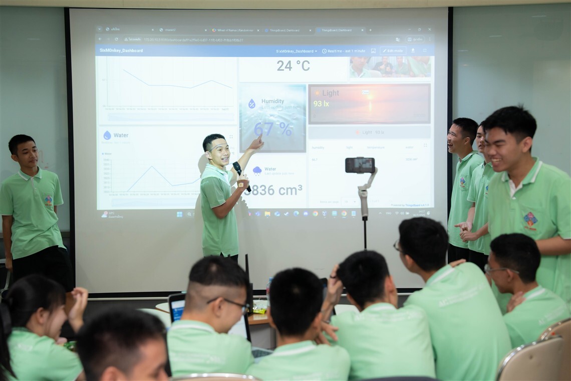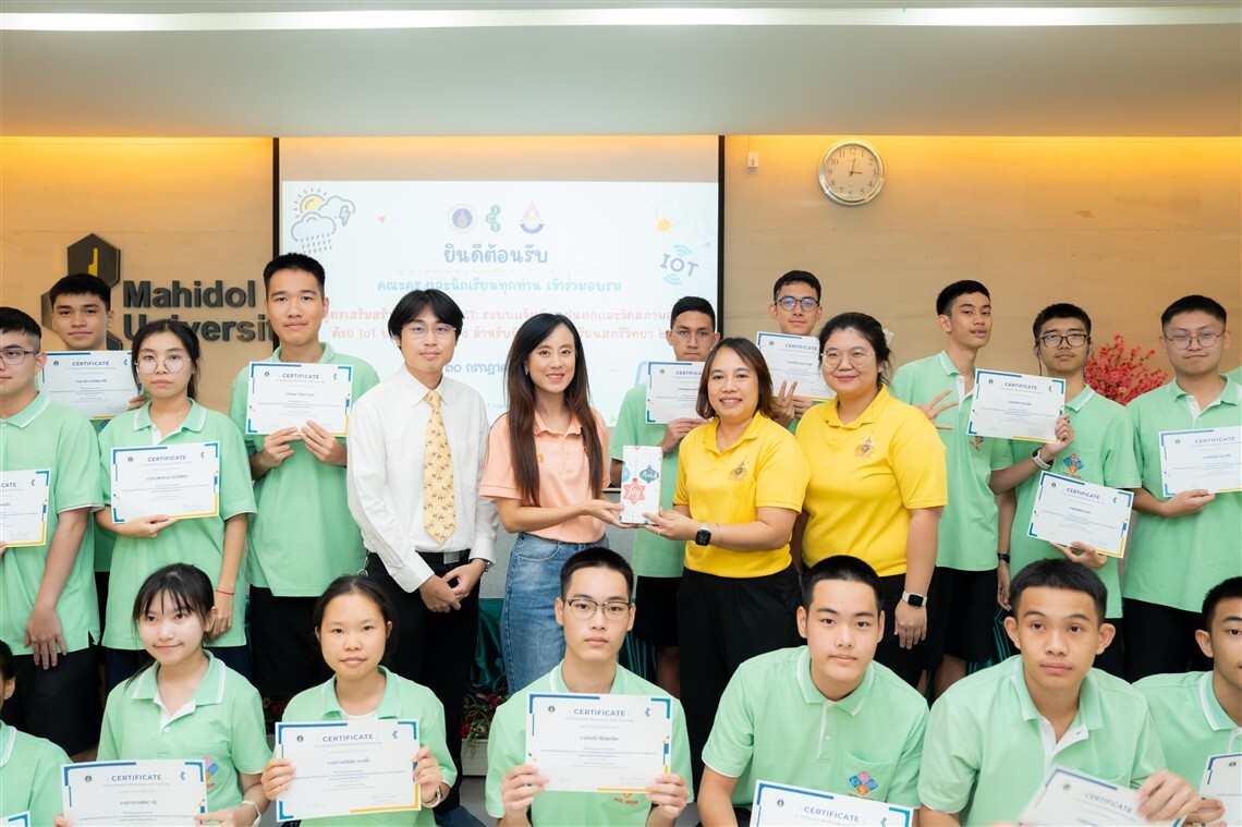 วันที่ 30 กรกฎาคม 2568 คณะเทคโนโลยีสารสนเทศและการสื่อสาร มหาวิทยาลัยมหิดล (ICT Mahidol) จัดอบรมหลักสูตร “เสริมสร้างทักษะด้าน ICT : ระบบแจ้งเตือนฝนตกและวัดสภาพอากาศด้วย IoT บน ThingsBoard” สำหรับนักเรียนโรงเรียนสตรีวิทยา 2 ในพระราชูปถัมภ์ฯ โดยได้รับเกียรติจาก คุณธมกร เจียมรชดา นักวิชาการคอมพิวเตอร์ งานโครงสร้างพื้นฐานเทคโนโลยี เป็นวิทยากรถ่ายทอดองค์ความรู้ให้แก่นักเรียนระดับชั้นมัธยมศึกษาปีที่ 5 ห้องเรียนพิเศษวิทยาศาสตร์ คณิตศาสตร์ และปัญญาประดิษฐ์ (AI) จำนวน 36 คน และคณะครู จำนวน 3 คน โดยมี ผศ.ดร.ทิพาจินต์ ไทยพิสุทธิกุล ผู้ช่วยคณบดีฝ่ายบริการวิชาการและถ่ายทอดเทคโนโลยี กล่าวปิดการอบรม และมอบของที่ระลึกให้แก่คณะครู ณ ห้อง IT405 – 406