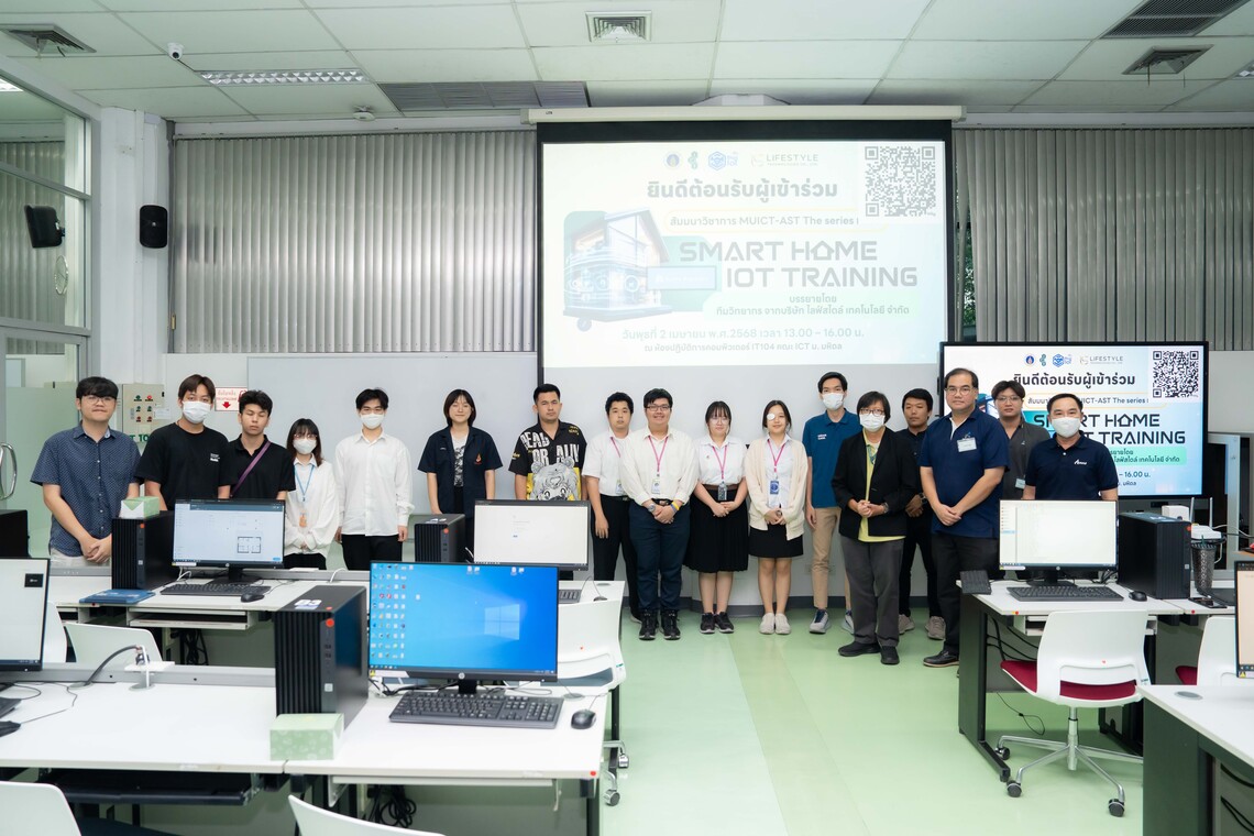วันที่ 2 เมษายน 2568 คณะเทคโนโลยีสารสนเทศและการสื่อสาร มหาวิทยาลัยมหิดล (ICT Mahidol) ร่วมกับ สมาคมไทยไอโอที และ บริษัท ไลฟ์สไตล์ เทคโนโลยี จำกัด จัดสัมมนาวิชาการ MUICT-AST The Series ในหัวข้อ “Smart Home IoT Training” โดยได้รับเกียรติจาก ผศ.ดร. ฐิตินันท์ ตันติธรรม อาจารย์ประจำกลุ่มวิชาวิทยาการคอมพิวเตอร์ กล่าวเปิดกิจกรรม พร้อมด้วย คุณสรรสวีร์ ศักตารักษ์ Product Specialist คุณอาทิตย์ สุขช่วย Smart Solution Specialist คุณสหรัตน์ จันทร์สิงห์ และ คุณเฉลิมพล จรูญกิตติพงศ์ Lifestyle’s Solution Expert จาก บริษัท ไลฟ์สไตล์ เทคโนโลยี จำกัด ร่วมเป็นวิทยากรถ่ายทอดองค์ความรู้เกี่ยวกับการสร้างระบบบ้านอัจฉริยะโดยใช้แพลตฟอร์ม Home Assistant และอุปกรณ์สมาร์ทโฮมของแพลตฟอร์ม TUYA ให้แก่ผู้สนใจ ณ ห้องปฏิบัติการคอมพิวเตอร์ IT104 ชั้น 1 คณะ ICT มหาวิทยาลัยมหิดล ศาลายา