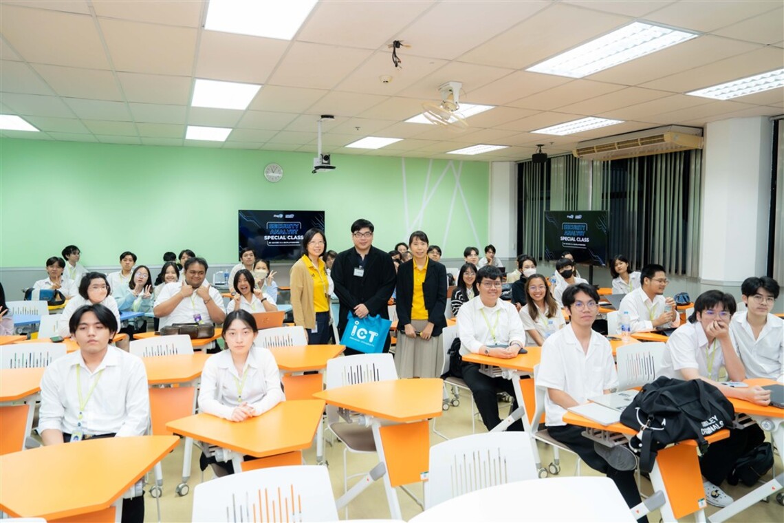 วันที่ 22 กันยายน 2568 คณะเทคโนโลยีสารสนเทศและการสื่อสาร มหาวิทยาลัยมหิดล (ICT Mahidol) นำโดย รองศาสตราจารย์ ดร.วัสกา วิสุทธิวิเศษ ประธานหลักสูตรวิทยาศาสตรมหาบัณฑิต สาขาวิชาความมั่นคงไซเบอร์และการประกันสารสนเทศ และ ดร.อัษฎารัตน์ คูรัตน์ ผู้ช่วยคณบดีฝ่ายการจัดการความเสี่ยงและความมั่นคงทางไซเบอร์ ซึ่งเป็นอาจารย์ประจำรายวิชา ทสวด 351 ความมั่นคงปลอดภัยทางไซเบอร์ขั้นสูง (ITDS351 Advanced Cybersecurity) จัดบรรยายพิเศษในหัวข้อ “SOC, SIEM, SOAR และ Incident Response” ให้แก่นักศึกษาชั้นปีที่ 3 หลักสูตรวิทยาศาสตรบัณฑิต สาขาวิทยาการจัดการและเทคโนโลยีดิจิทัล (DST หลักสูตรไทย) โดยได้รับเกียรติจากคุณสุเมธ จิตภักดีบดินทร์ Incident Response Manager จากบริษัท ซีเคียว ดี เซ็นเตอร์ จำกัด เป็นวิทยากรถ่ายทอดความรู้เกี่ยวกับความมั่นคงปลอดภัยทางไซเบอร์ โดยเฉพาะในด้านการใช้ซอฟต์แวร์สำหรับการรวบรวมและวิเคราะห์เหตุการณ์จากระบบสารสนเทศต่างๆ เพื่อค้นหาความผิดปกติหรือภัยคุกคาม พร้อมทั้งการประยุกต์ใช้ระบบอัตโนมัติในการจัดการและตอบสนองต่อเหตุการณ์ด้านความมั่นคงปลอดภัยอย่างมีประสิทธิภาพ เพื่อยกระดับการป้องกันและเสริมสร้างความพร้อมขององค์กรต่อความเสี่ยงทางไซเบอร์ในยุคดิจิทัล ณ ห้อง IT331 ชั้น 3 คณะ ICT มหาวิทยาลัยมหิดล ศาลายา