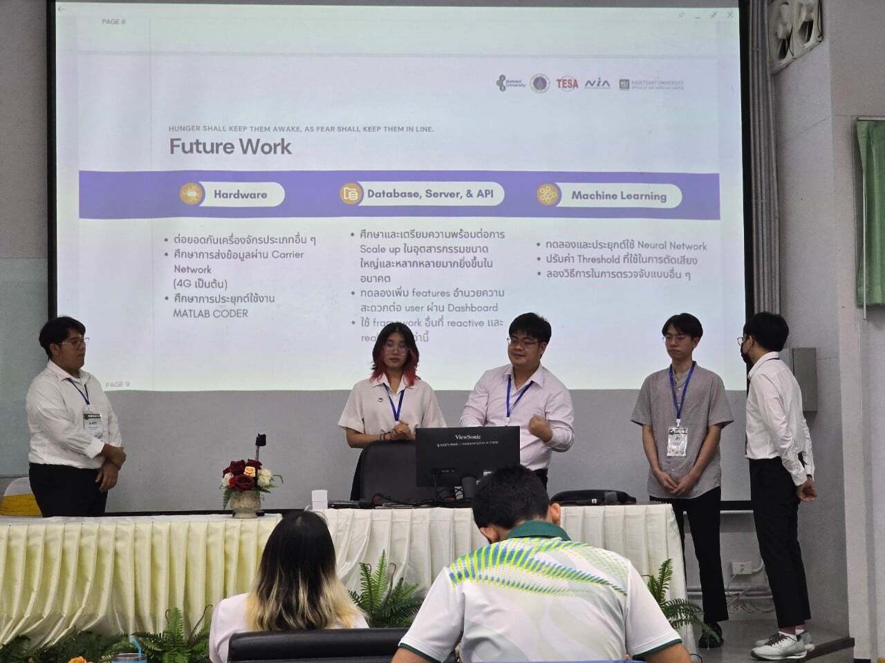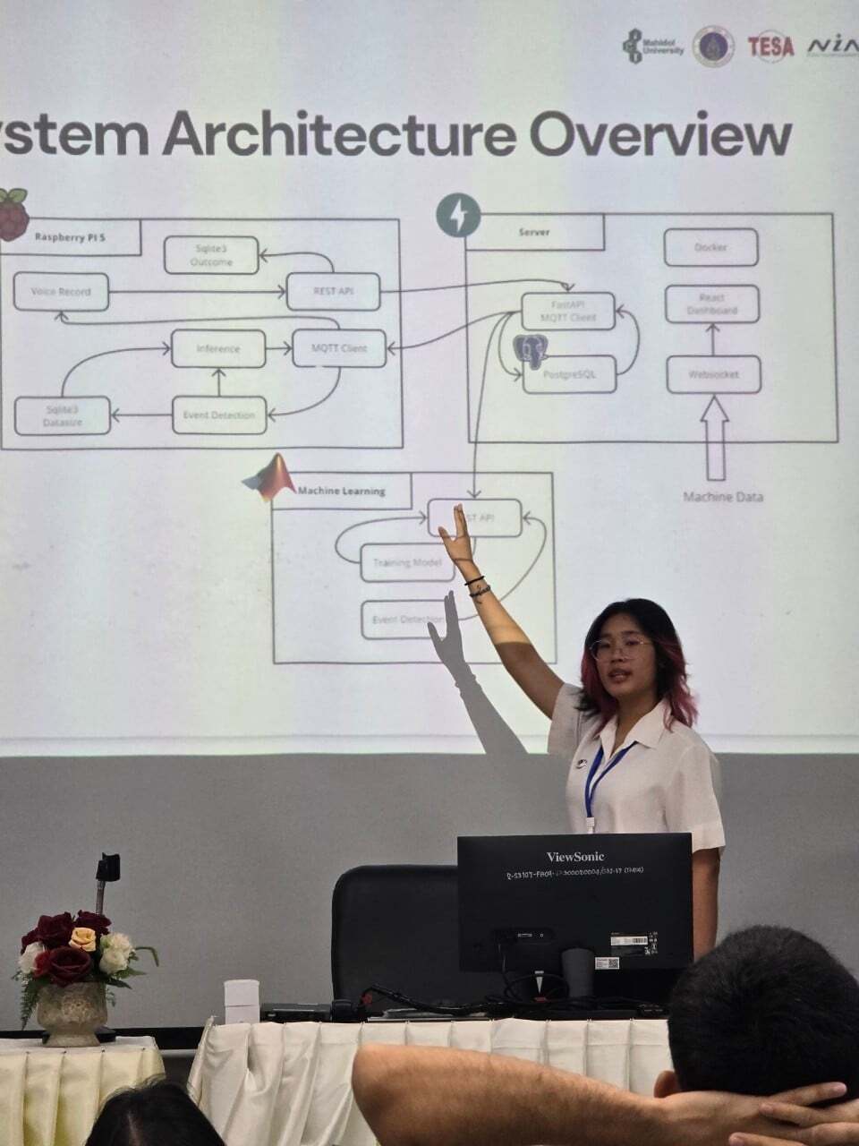 ระหว่างวันที่ 11 – 16 พฤศจิกายน 2567 นักศึกษาคณะเทคโนโลยีสารสนเทศและการสื่อสาร มหาวิทยาลัยมหิดล (ICT Mahidol) จำนวน 2 ทีม ได้แก่ ทีม “บ้านและสวน 2024” และ ทีม “บ้านและสวน 2024 สาขา 2” ได้เข้าร่วมการแข่งขันประชันทักษะทางด้านระบบสมองกลฝังตัวชิงแชมป์ประเทศไทยครั้งที่ 18 (TESA Top Gun Rally 2024) ชิงถ้วยพระราชทาน สมเด็จพระกนิษฐาธิราชเจ้า กรมสมเด็จพระเทพรัตนราชสุดาฯ สยามบรมราชกุมารี ภายใต้หัวข้อ “การบำรุงรักษาเชิงคาดการณ์ด้วยเสียง และปัญญาประดิษฐ์โดยการคำนวณผลต้นทาง (Acoustic and AI-Based Predictive Maintenance with Edge Computing)” โดยมี ผศ. ดร.ฐิตินันท์ ตันติธรรม อาจารย์ประจำกลุ่มวิชาวิทยาการคอมพิวเตอร์ เป็นอาจารย์ที่ปรึกษา และ ดร.สิรวิชญ์ เวชมนัส อาจารย์ประจำกลุ่มวิชาวิทยาการคอมพิวเตอร์ เป็นผู้ช่วยอาจารย์ที่ปรึกษาทีม ณ คณะวิศวกรรมศาสตร์ ณ มหาวิทยาลัยเกษตรศาสตร์ วิทยาเขตศรีราชา