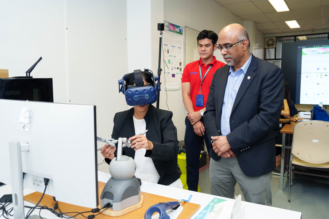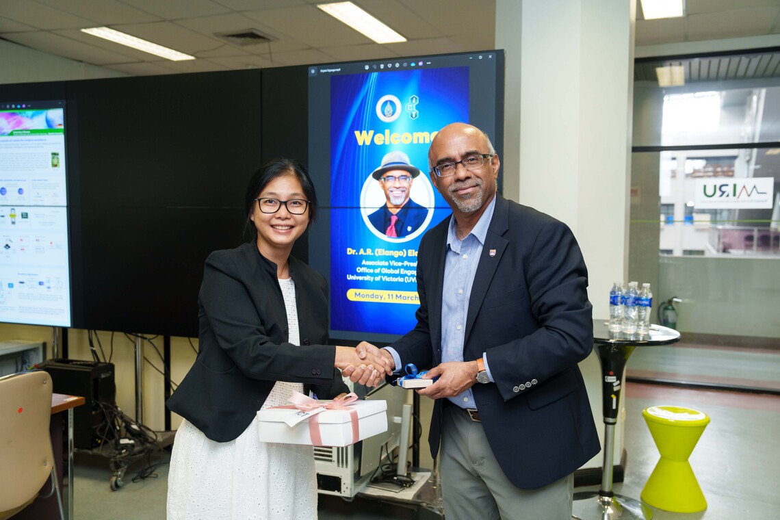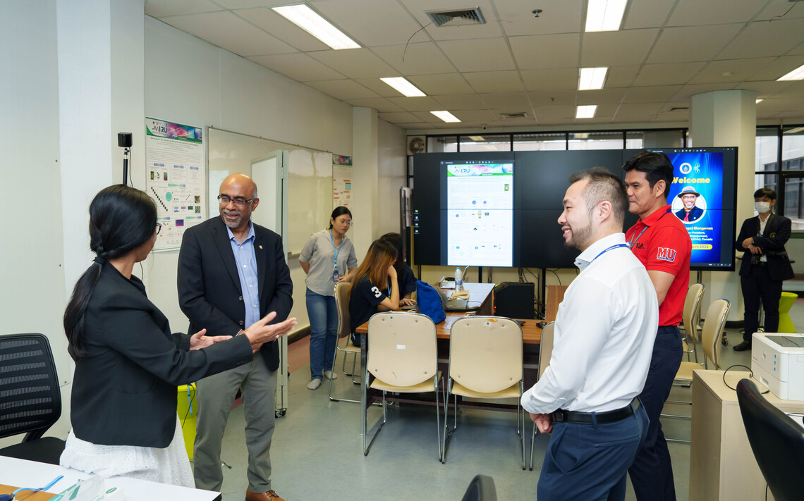 วันที่ 11 มีนาคม 2567 Dr. Myat Su Yin นักวิจัยคณะเทคโนโลยีสารสนเทศและการสื่อสาร มหาวิทยาลัยมหิดล (ICT Mahidol) เป็นผู้แทน Professor Dr. Peter Haddawy รองคณบดีฝ่ายวิจัย พร้อมด้วยเจ้าหน้าที่จากกองวิเทศสัมพันธ์ ให้การต้อนรับ Dr. A.R. (Elango) Elangovan, Associate Vice-President, Office of Global Engagement, University of Victoria (UVic), Canada ในโอกาสเข้าเยี่ยมชมห้องปฏิบัติการวิจัย Mahidol-Bremen Medical Informatics Research Unit (MIRU) คณะ ICT มหาวิทยาลัยมหิดล ศาลายา