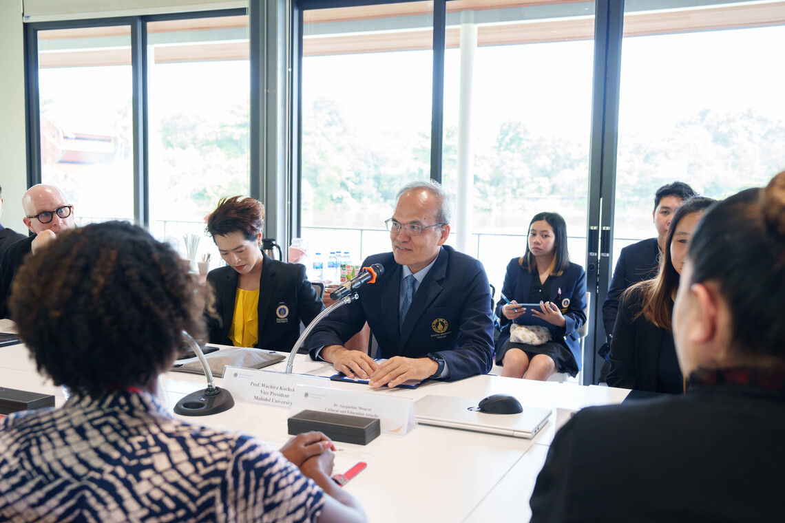 วันที่ 22 เมษายน 2567 คณะเทคโนโลยีสารสนเทศและการสื่อสาร มหาวิทยาลัยมหิดล (ICT Mahidol) นำโดย Prof. Dr. Peter Haddawy รองคณบดีฝ่ายวิจัย และ ผู้ช่วยศาสตราจารย์ ดร. จิดาภา ไกรสังข์ ผู้ช่วยคณบดีฝ่ายพัฒนาหลักสูตร เป็นผู้แทนคณบดี ร่วมให้การต้อนรับอาคันตุกะจากโครงการ The International Academic Partnership Program (IAPP) ในโอกาสเข้าเยี่ยมเยียนมหาวิทยาลัยมหิดล และหารือความร่วมมือด้านวิชาการร่วมกันในอนาคต พร้อมรับฟังยุทธศาสตร์ด้านวิเทศสัมพันธ์ของมหาวิทยาลัยมหิดล และภาพรวมของคณะต่างๆ ในมหาวิทยาลัยมหิดล โดยมี ศาสตราจารย์ นายแพทย์วชิร คชการ รองอธิการบดี และรองศาสตราจารย์ ดร. นภเรณู สัจจรักษ์ ธีระฐิติ รองอธิการบดีฝ่ายวิเทศสัมพันธ์และสื่อสารองค์กร มหาวิทยาลัยมหิดล พร้อมด้วยผู้แทนจากคณะวิศวกรรมศาสตร์ คณะวิทยาศาสตร์ วิทยาลัยนานาชาติ และสถาบันพัฒนาสุขภาพอาเซียน ร่วมให้การต้อนรับ ณ ห้อง Workshop ริมน้ำ โครงการจัดตั้งสถาบันอุทยานธรรมชาติวิทยาสิรีรุกขชาติ มหาวิทยาลัยมหิดล ศาลายา