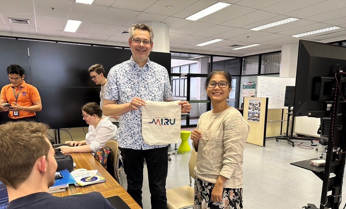 วันที่ 21 มีนาคม 2567 คณะเทคโนโลยีสารสนเทศและการสื่อสาร มหาวิทยาลัยมหิดล (ICT Mahidol) นำโดย Prof. Peter Haddawy รองคณบดีฝ่ายวิจัย ให้การต้อนรับ Dr. Thomas Barkowsky, Postdoctoral Researcher in the Cognitive Systems group and a Principal Investigator in the Spatial Cognition Research Center และนักศึกษาจากโครงการ Mobile4D ในโอกาสเข้าเยี่ยมชมห้องปฏิบัติการวิจัย Mahidol-Bremen Medical Informatics Research Unit (MIRU) คณะ ICT มหาวิทยาลัยมหิดล ศาลายา พร้อมประชุมหารือการทำโครงการวิจัยหัวข้อต่างๆ ในอนาคตร่วมกัน อาทิ อุปกรณ์ IoT สำหรับการตรวจสอบน้ำเสียเพื่อการตรวจหาการระบาดของโรค ระบบสนับสนุนการตัดสินใจในการวินิจฉัยโรคไข้เลือดออก แอปพลิเคชันบันทึกข้อมูลวัคซีนส่วนบุคคล ระบบตรวจสอบโรคไข้เลือดออก และระบบสนับสนุนการทดลองวัคซีน เป็นต้น