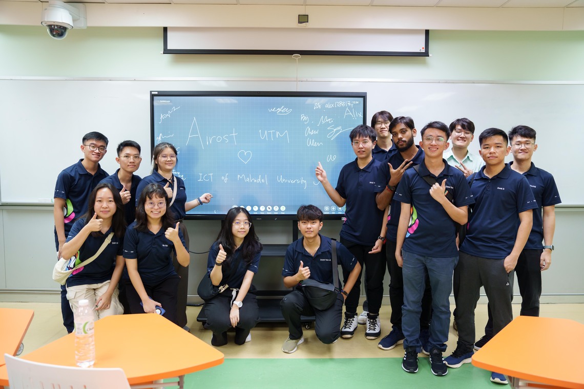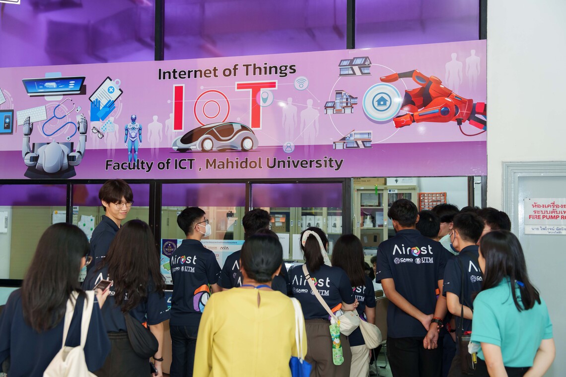 ในโอกาสนี้ เจ้าหน้าที่งานสื่อสารองค์กร ได้นำนักศึกษาเข้าเยี่ยมชมสิ่งอำนวยความสะดวกด้านการเรียนของคณะฯ อาทิ ห้องเรียน Smart Classroom ห้องปฏิบัติการวิจัย Mahidol-Bremen Medical Informatics Research Unit (MIRU) โดยได้รับเกียรติจาก Dr. Myat Su Yin นักวิจัยคณะ ICT คุณธนินทร์ ระเบียบโพธิ์ และ คุณชัยธวัช สง่าเมือง นักศึกษาหลักสูตรปรัชญาดุษฎีบัณฑิต สาขาวิชาวิทยาการคอมพิวเตอร์ พร้อมด้วย นางสาวนิพพิชฌน์ อภิสิทธิ์ภูวกุล นางสาวปวีณา กำเนิดพันธ์ และนายธันย์ธำรง จิรภัทรมณีโชติ นักศึกษาหลักสูตรวิทยาศาสตรบัณฑิต สาขาวิชาเทคโนโลยีสารสนเทศและการสื่อสาร (ICT หลักสูตรนานาชาติ) ชั้นปีที่ 4 ร่วมแนะนำโครงงานวิจัยของห้องปฏิบัติการวิจัย MIRU Lab อีกทั้ง ยังได้เข้าเยี่ยมชมห้องปฏิบัติการ IoT (IoT Lab) โดยมี คุณธมกร เจียมรชดา นักวิชาการคอมพิวเตอร์ งานโครงสร้างพื้นฐานเทคโนโลยี เป็นผู้แนะนำห้องปฏิบัติการอีกด้วย