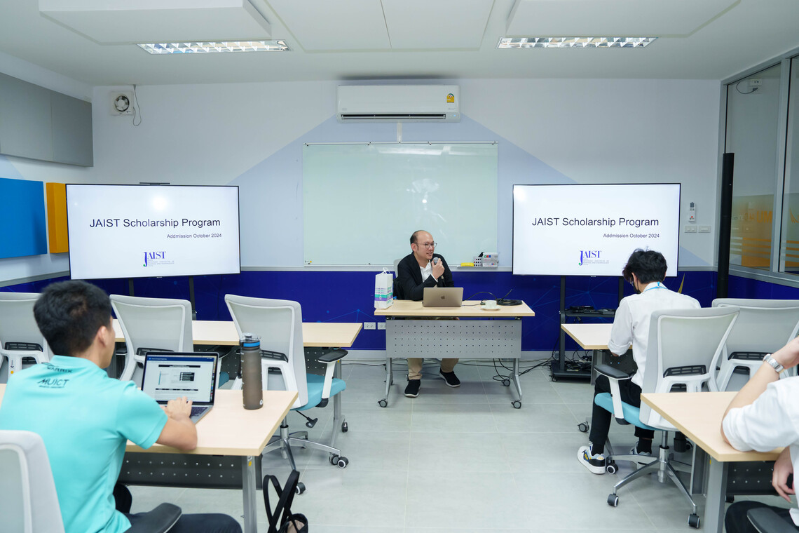 วันที่ 21 กุมภาพันธ์ 2567 คณะเทคโนโลยีสารสนเทศและการสื่อสาร มหาวิทยาลัยมหิดล (ICT Mahidol) นำโดย ผศ.ดร. ธนพล นรเสฏฐ์ ผู้ช่วยคณบดีฝ่ายการศึกษา ให้การต้อนรับ ผศ.ดร. ณัฐวุฒิ เกิดเกียรติขจร Senior Lecturer จาก Japan Advanced Institute of Science and Technology (JAIST) ประเทศญี่ปุ่น ในโอกาสเข้าเยี่ยมเยียนคณะฯ และจัดการบรรยายพิเศษในหัวข้อ “JAIST Scholarship Sharing Session” ในระดับปริญญาโท และทุนการศึกษาต่อ ณ Japan Advanced Institute of Science and Technology (JAIST) ประเทศญี่ปุ่น ให้แก่คณาจารย์ และนักศึกษาของมหาวิทยาลัยมหิดล ณ ห้อง A2 คณะ ICT มหาวิทยาลัยมหิดล ศาลายา