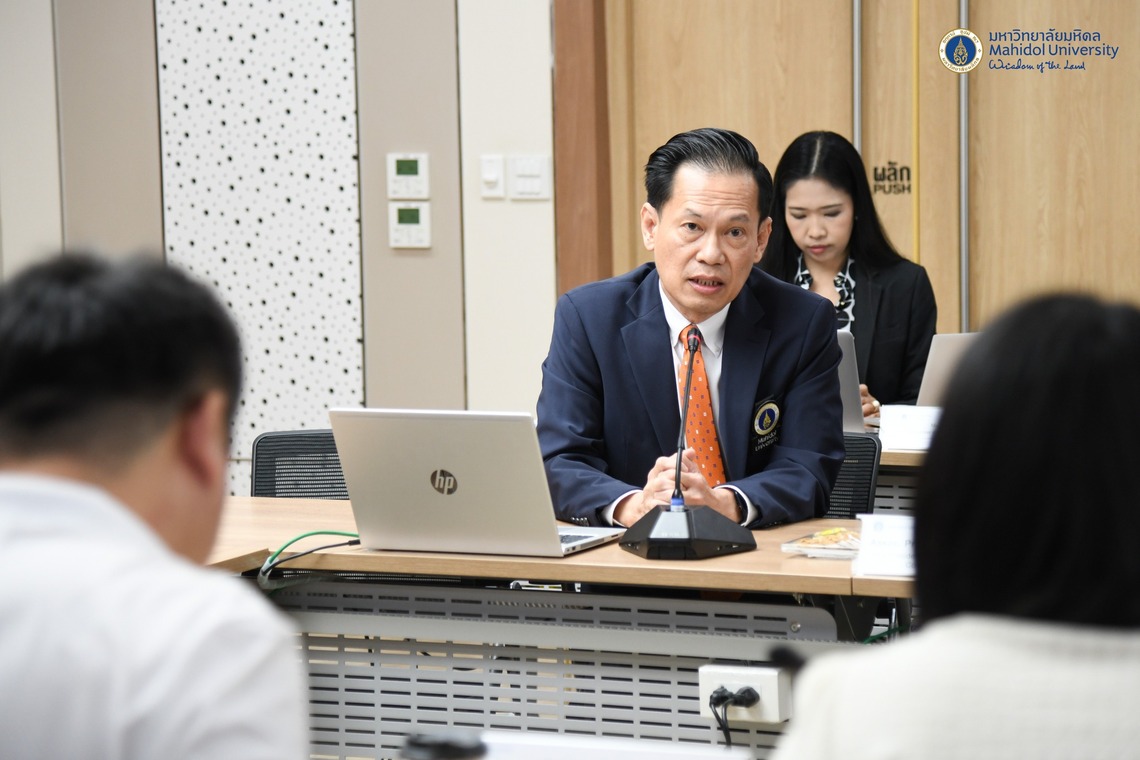 วันที่ 4 กรกฎาคม 2567 ดร. พัฒนศักดิ์ มงคลวัฒน์ คณบดี คณะเทคโนโลยีสารสนเทศและการสื่อสาร มหาวิทยาลัยมหิดล (ICT Mahidol) พร้อมด้วย ดร. เพชร สัจจชลพันธ์ รองคณบดีฝ่ายบริหารและทรัพยากรบุคคล และ ดร. ทิพาจินต์ ไทยพิสุทธิกุล ผู้ช่วยคณบดีฝ่ายบริการและถ่ายทอดเทคโนโลยี เข้าร่วมต้อนรับอาคันตุกะ จาก Harbin Institute of Technology สาธารณรัฐประชาชนจีน ในโอกาสเข้าเยี่ยมเยียนมหาวิทยาลัยมหิดล และหารือความร่วมมือด้านวิชาการร่วมกันในอนาคต โดยมี รองศาสตราจารย์ ดร. นภเรณู สัจจรักษ์ ธีระฐิติ รองอธิการบดีฝ่ายวิเทศสัมพันธ์และสื่อสารองค์กร มหาวิทยาลัยมหิดล พร้อมด้วย ผศ.ดร.ภัทรพร โปสกนิษฐกุล รองคณบดีฝ่ายวิเทศสัมพันธ์และกิจการพิเศษ คณะวิศวกรรมศาสตร์ และเจ้าหน้าที่จากกองวิเทศสัมพันธ์ มหาวิทยาลัยมหิดล ร่วมให้การต้อนรับ ณ ห้องประชุม 530 ชั้น 5 สำนักงานคณบดี มหาวิทยาลัยมหิดล วิทยาเขตศาลายา