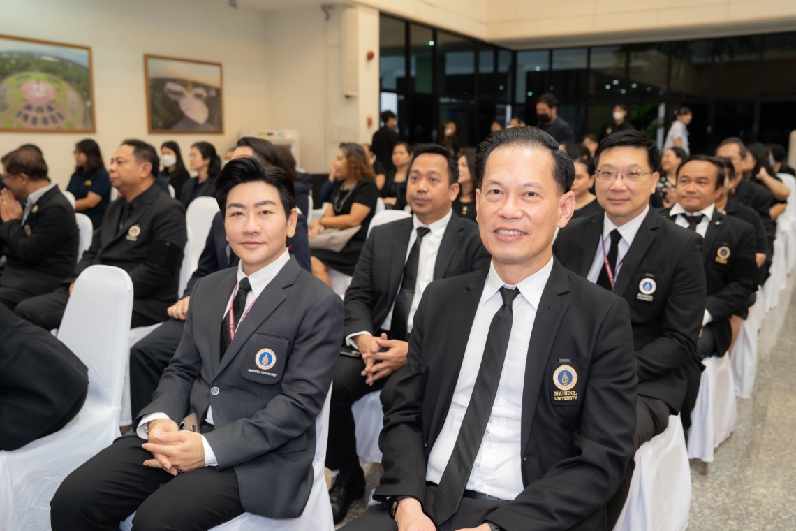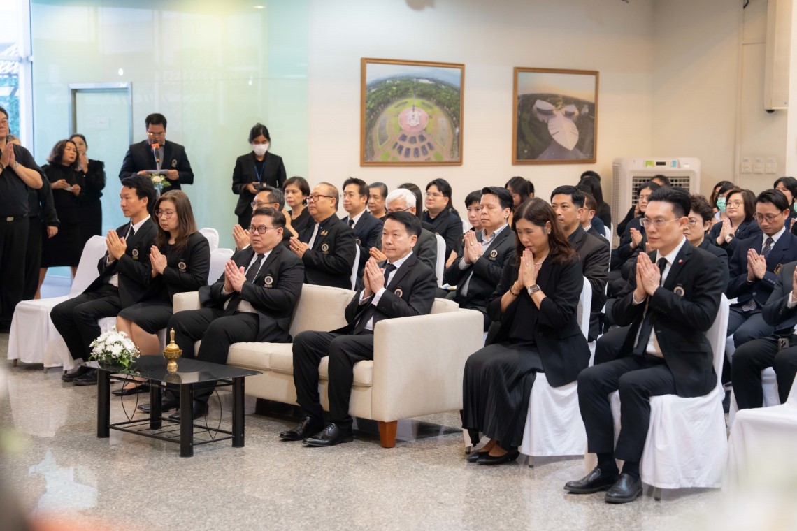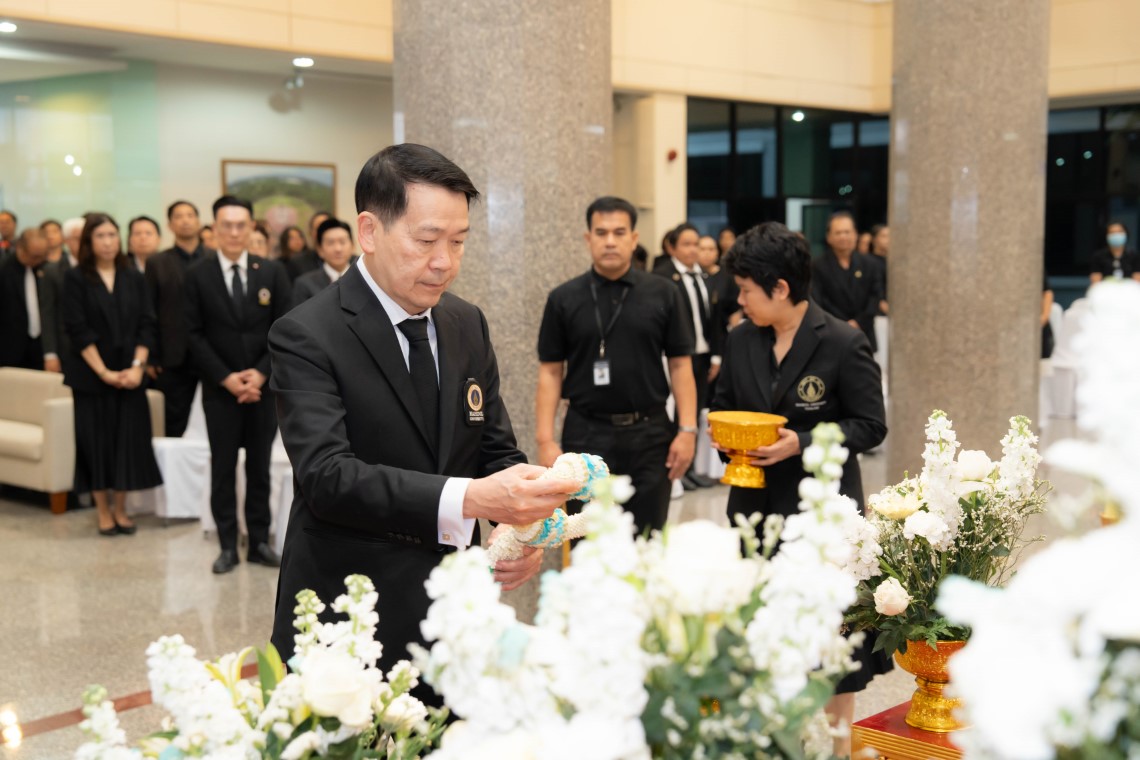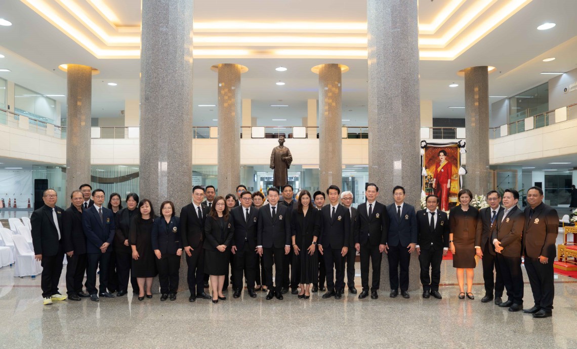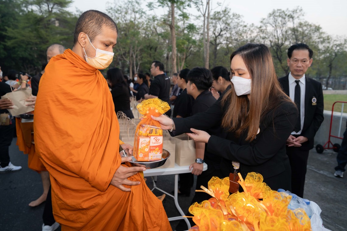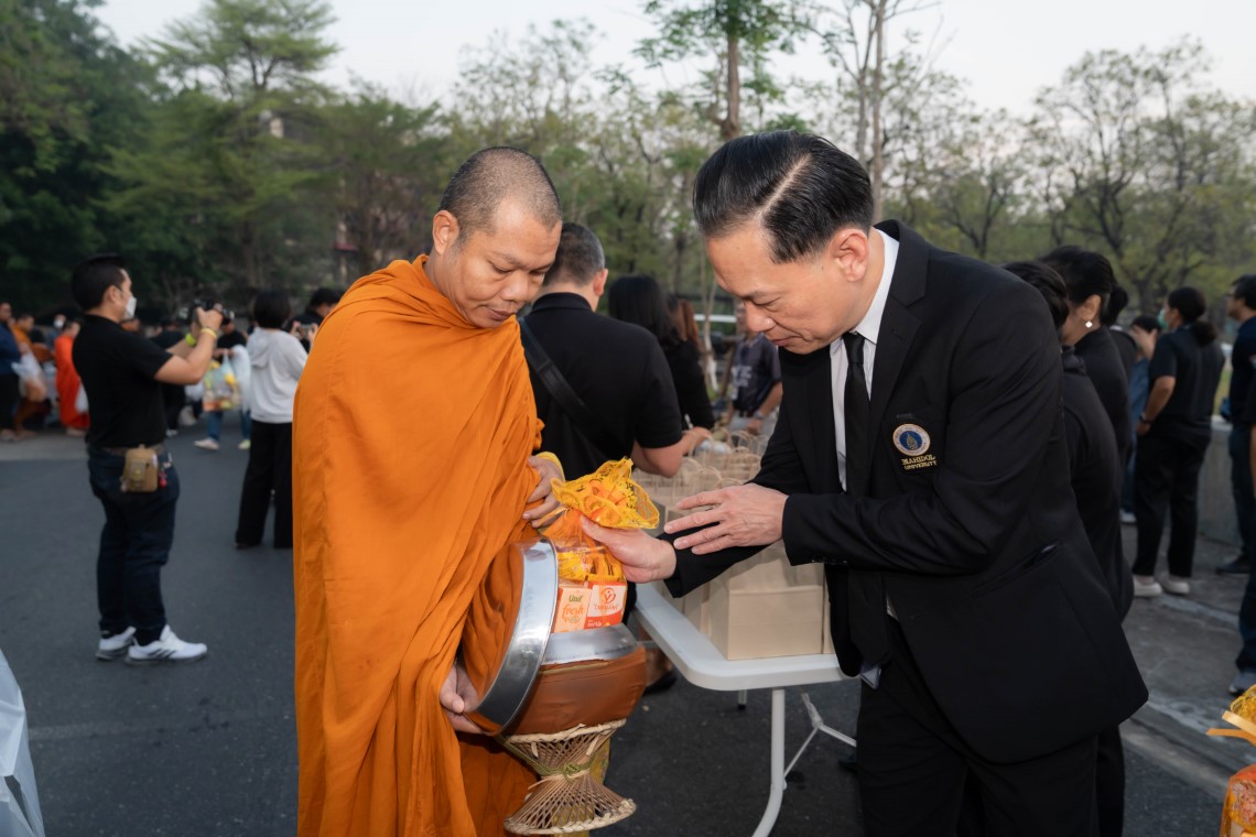 After the alms-giving, Dr. Pattanasak Mongkolwat participated in the 100-day merit-making ceremony held in royal tribute to Her Majesty Queen Sirikit The Queen Mother, to express profound gratitude for Her Majesty’s boundless benevolence and to demonstrate loyalty. The ceremony was presided over by Prof. Piyamitr Sritara, MD, FRCP, President of Mahidol University, and took place in the first-floor hallway of the Office of the President, Mahidol University, Salaya Campus.