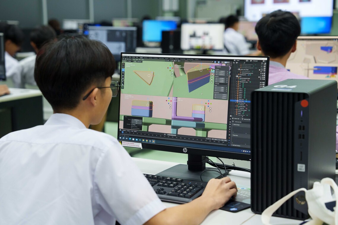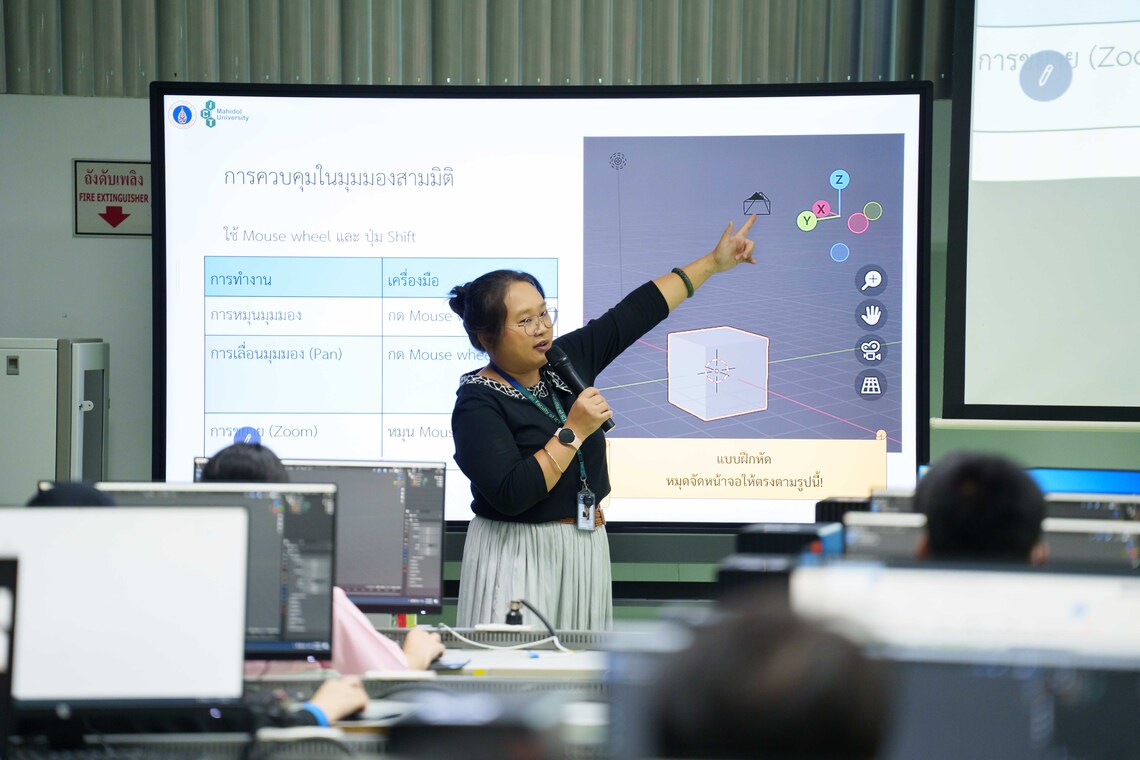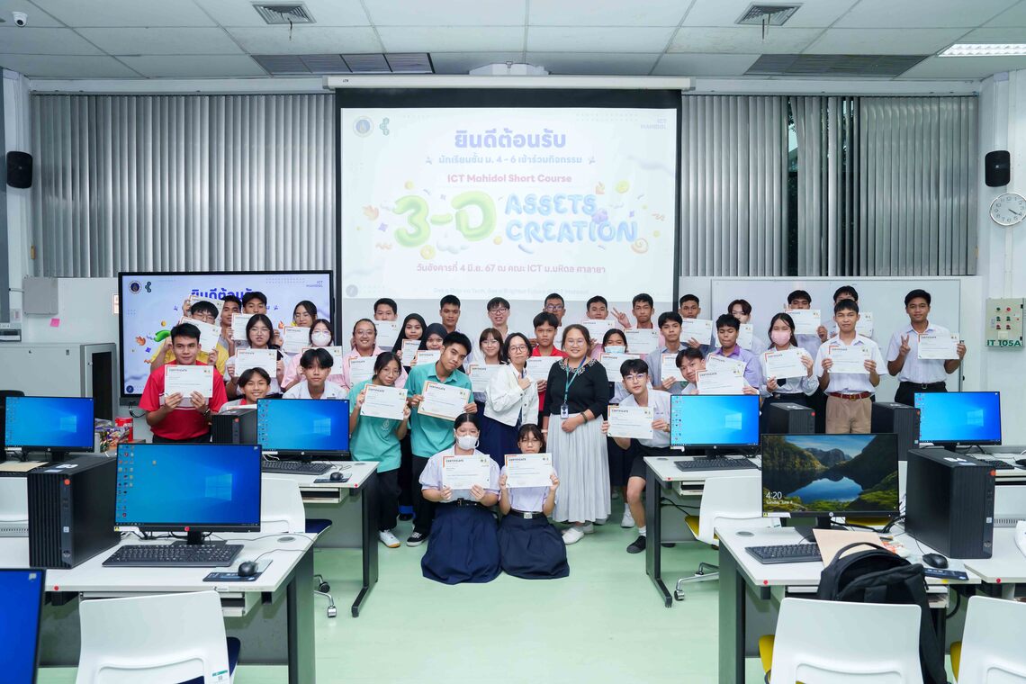 On June 4, 2024 – the Faculty of Information and Communication Technology, Mahidol University (ICT Mahidol), hosted the “ICT Mahidol Short Course: 3-D Assets Creation” for 35 high school students. On this occasion, Dr. Pisit Praiwattana, Assistant Dean for Organizational Communications and Media Technology, together with Dr. Pilailuck Panphattarasap, and Miss Kanrawi Kitkhachonkunlaphat, Instructors of Computer Science Group, served as the keynote speakers. They provided knowledge on designing 3-D models using Blender software, including the use of Object Mode, Edit Mode, basic texture and material installation, the Asset Browser, Plugins, Add-ons, camera movement, and rendering techniques. The workshop was held in the Computer Laboratory IT105, 1st floor, the ICT Building, Salaya.