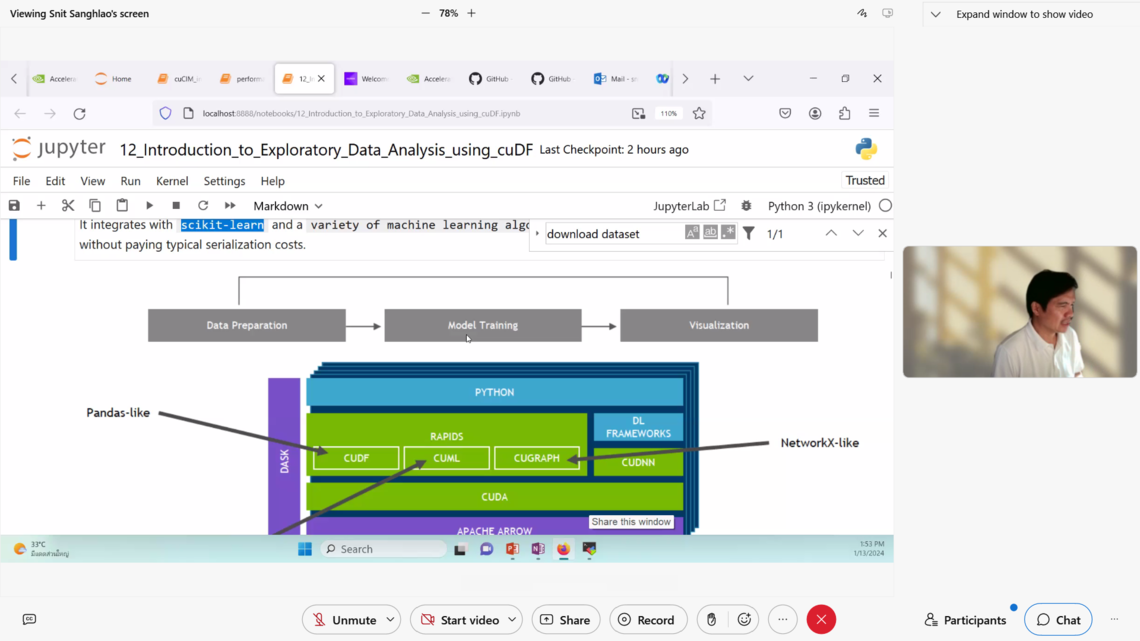On January 13, 2023, the Faculty of Information and Communication Technology at Mahidol University (ICT Mahidol) organized the academic seminar series, “MUICT-AST The Series: The Best of 2024” on “Fundamental of 3D Computer Graphic Elements and Introduction to Free Digital Content Creation Software, Blender,” and “Data Science at the Speed of Thought: GPU Accelerated Data Science with RAPIDS.AI:- cuDF / cuCIM accacelerating Pandas/Scikit-Image API”. On this occasion, Dr. Pisit Praiwattana, Assistant Dean for Organizational Communications and Media Technology, together with Lect. Snit Sanghlao, Assistant Dean for Engineering and Environment, served as the speakers for 67 participants via Webex Meetings.