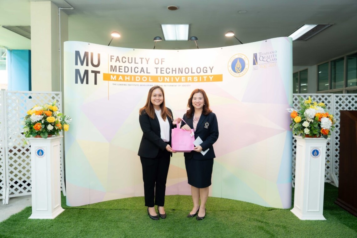 On June 24, 2025 – Asst. Prof. Dr. Jidapa Kraisangka, Assistant Dean for Academic and Curriculum Development, representing the Dean of the Faculty of Information and Communication Technology, Mahidol University (ICT Mahidol), extended her congratulations to the Faculty of Medical Technology, Mahidol University on the occasion of its 68th founding anniversary. She was warmly welcomed by the Dean of the Faculty of Medical Technology, Asst. Prof. Dr. Chotiros Plabplueng, at the Faculty of Medical Technology, Mahidol University, Salaya Campus.