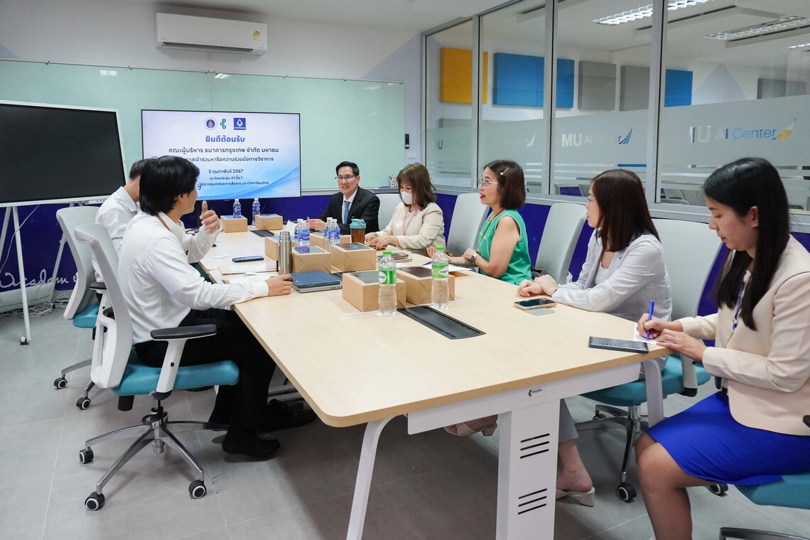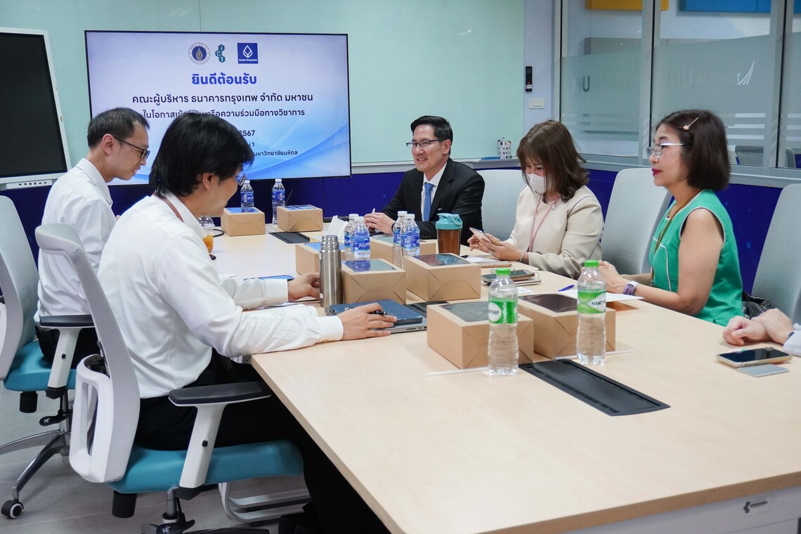 On February 5, 2024, the Faculty of Information and Communication Technology, Mahidol University (ICT Mahidol), led by Asst. Dr. Thanapon Noraset, Assistant Dean for Academic Affairs, and Asst. Prof. Dr. Boonsit Yimwadsana, Program Chair of M.Sc. in Computer Science, welcomed Mr. Viravate Vongkitbuncha, Vice President, Miss Winitta Ruangpermpool, Assistant Vice President, Wichuda Buspavanich, Assistant Vice President, and Ms. Sukanya Thongnit, Assistant Vice President and Manager, from Bangkok Bank Public Company Limited, on the occasion of their visit.