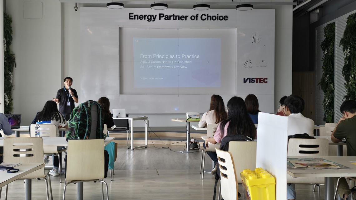 During July 24-25, 2024, the Faculty of Information and Communication Technology, Mahidol University (ICT Mahidol), led by Asst. Prof. Dr. Morakot Choetkiertikul, Asst. Prof. Dr. Chaiyong Ragkhitwetsagul, and Asst. Prof. Dr. Srisupa Palakvangsa Na Ayudhya, instructors of the Computer Science Group and Software Engineering and Business Analytics Research Clusters (SEBA), as well as Mr. Chanyanan Sethpitak (ICT Alumnus #Batch 5), Senior Scrum Master at the London Stock Exchange Group (LSEG), served as speakers to share their knowledge and conduct a hands-on workshop titled “From Principles to Practice: Agile & Scrum.” The workshop was organized for the faculty members, staff, researchers, and students of the Vidyasirimedhi Institute of Science and Technology (VISTEC) and personnel from Visup Co., Ltd., at VISTEC, Rayong Province.
