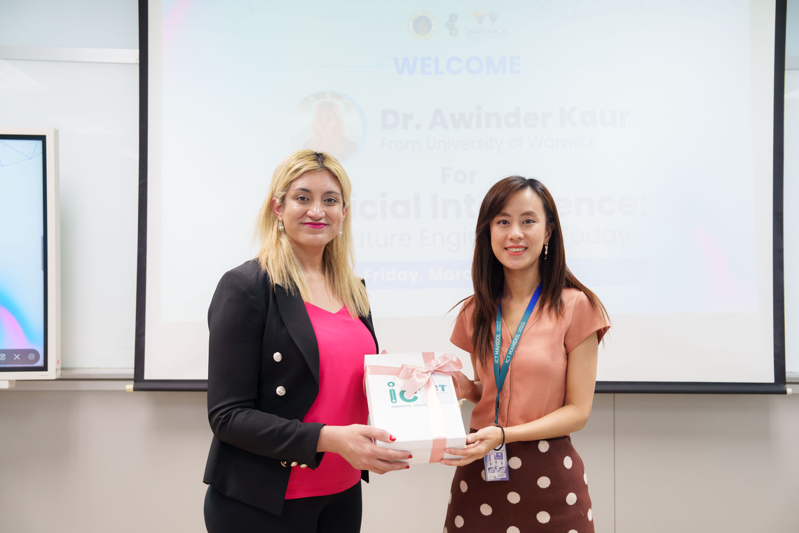 On March 15, 2024, the Faculty of Information and Communication Technology, Mahidol University (ICT Mahidol), in collaboration with the University of Warwick, United Kingdom, organized an academic seminar titled “Artificial Intelligence: The Future Engineered Today.” On this occasion, Dr. Awinder Kaur, Associate Professor and Discipline Group Lead in Data Science and Maths at WMG, University of Warwick, served as the speaker, imparting knowledge on the importance of Artificial Intelligence (AI) technology in the current context and its application to all participants. In addition, Dr. Tipajin Thaipisutikul, Assistant Dean for Academic Services and Technology Transfer, gave a warm welcome to all participants in Room IT322, 3rd floor, Faculty of ICT, Mahidol University, Salaya.