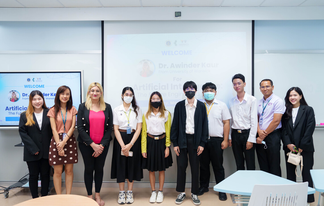 On March 15, 2024, the Faculty of Information and Communication Technology, Mahidol University (ICT Mahidol), in collaboration with the University of Warwick, United Kingdom, organized an academic seminar titled “Artificial Intelligence: The Future Engineered Today.” On this occasion, Dr. Awinder Kaur, Associate Professor and Discipline Group Lead in Data Science and Maths at WMG, University of Warwick, served as the speaker, imparting knowledge on the importance of Artificial Intelligence (AI) technology in the current context and its application to all participants. In addition, Dr. Tipajin Thaipisutikul, Assistant Dean for Academic Services and Technology Transfer, gave a warm welcome to all participants in Room IT322, 3rd floor, Faculty of ICT, Mahidol University, Salaya.
