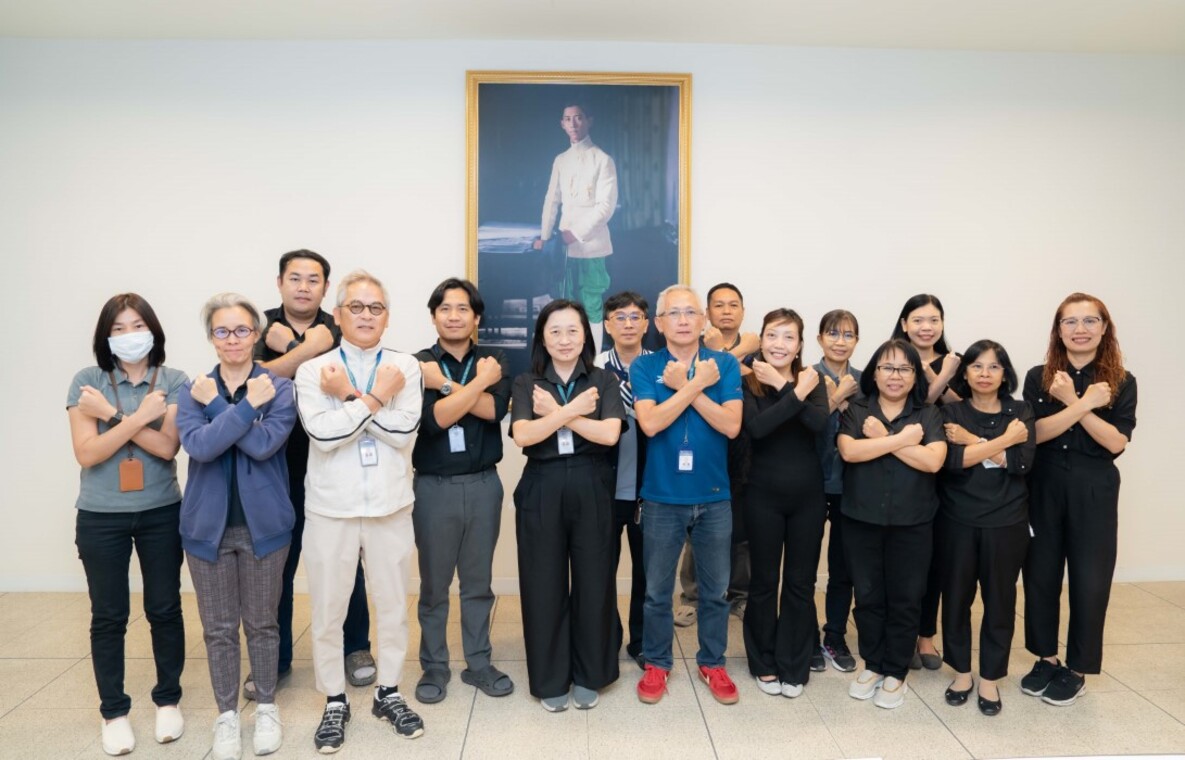 Furthermore, Mahidol University’s “No Gift Policy,” along with the corresponding guidelines of the Faculty of ICT, was also communicated to the participants. On this occasion, Lect. Pagaporn Pengsart, Deputy Dean for Infrastructure and Technology, together with the executive team, demonstrated their collective stance against all forms of corruption by making the symbolic gesture, placing the right hand over the left.