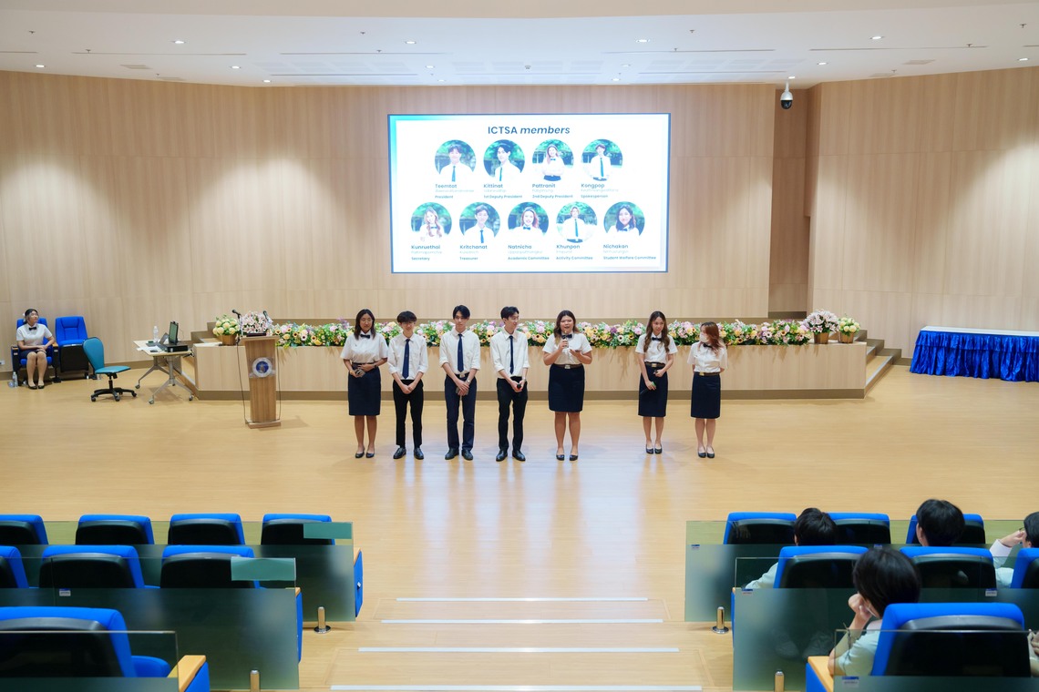 Following that, Dr. Pawitra Liamruk, Program Chair of the ICT International Program, as well as Assoc. Prof. Dr. Sudsanguan Ngamsuriyaroj, Advisor to the Dean, and the Program Committee provided advice on academic aspects, student services, and important information that students need to know. Additionally, Asst. Dr. Jidapa Kraisangka, Assistant Dean for Academic and Curriculum Development, gave information on discipline and student conduct to all students. Finally, the student association welcomed the new students and introduced the ICT Mahidol student clubs. At the end of the event, students were given the opportunity to ask questions about their studies and university life with the program instructors.