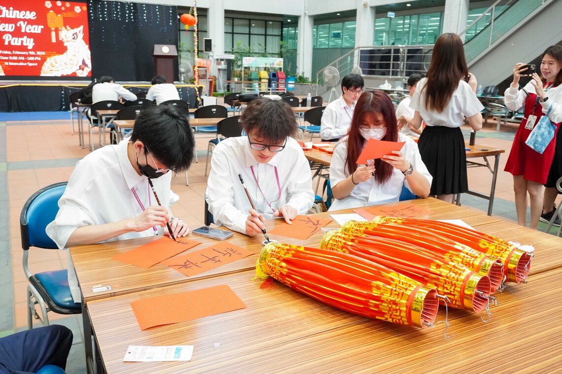 The objectives of the “Chinese New Year Party” were to promote an international atmosphere, focusing on allowing international and Thai students to learn and exchange cultures through various activities such as Chinese brush painting and fortune-telling (Lucky Draw), accompanied by the enjoyment of Chinese cuisine during the Chinese New Year Festival.