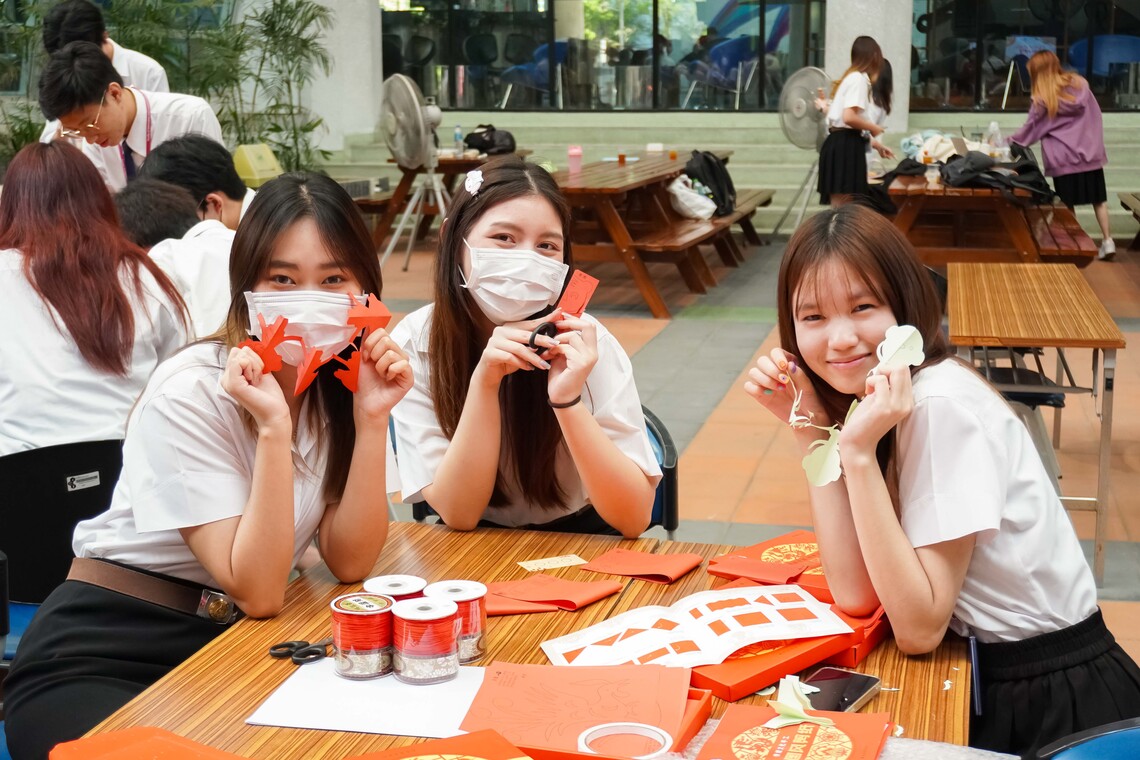 The objectives of the “Chinese New Year Party” were to promote an international atmosphere, focusing on allowing international and Thai students to learn and exchange cultures through various activities such as Chinese brush painting and fortune-telling (Lucky Draw), accompanied by the enjoyment of Chinese cuisine during the Chinese New Year Festival.