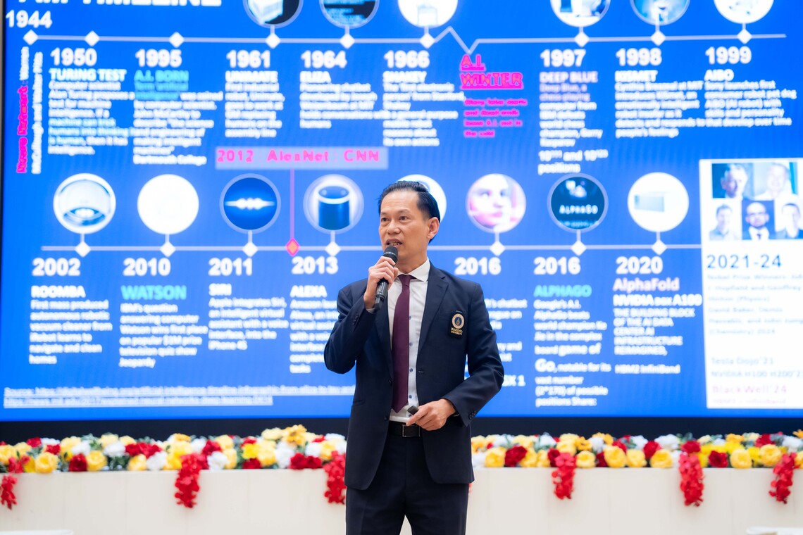 • “AI and AI Projects” by Asst. Prof. Dr. Thanapon Noraset, discussing AI technology, machine learning, deep learning, and the integration of AI with cybersecurity.