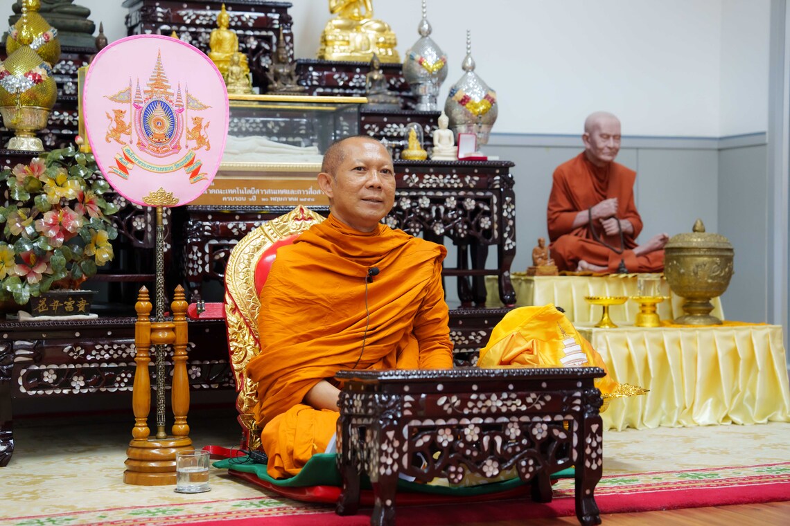 On July 16, 2024, the Faculty of Information and Communication Technology, Mahidol University (ICT Mahidol), led by the Preserving Arts and Culture Working Group, organized the “Dhamma Listening on the Occasion of Asalha Puja and Buddhist Lent Day: Work Efficiently, Live Happily with Dharma Itthibath and Kihisuk.” The session was conducted by Phra Maha Wisut Wisutthipanyo, Vice-Abbot of Kanchanaburi Royal Monastery and a 9th-grade Buddhist Theology achiever from Thewa Sangkharam Temple, and Caretaker of the Monk’s Health Center in the 19th Supreme Patriarch (Wang Dong Hospital). Many faculty members and staff attended the session through Webex Meetings.