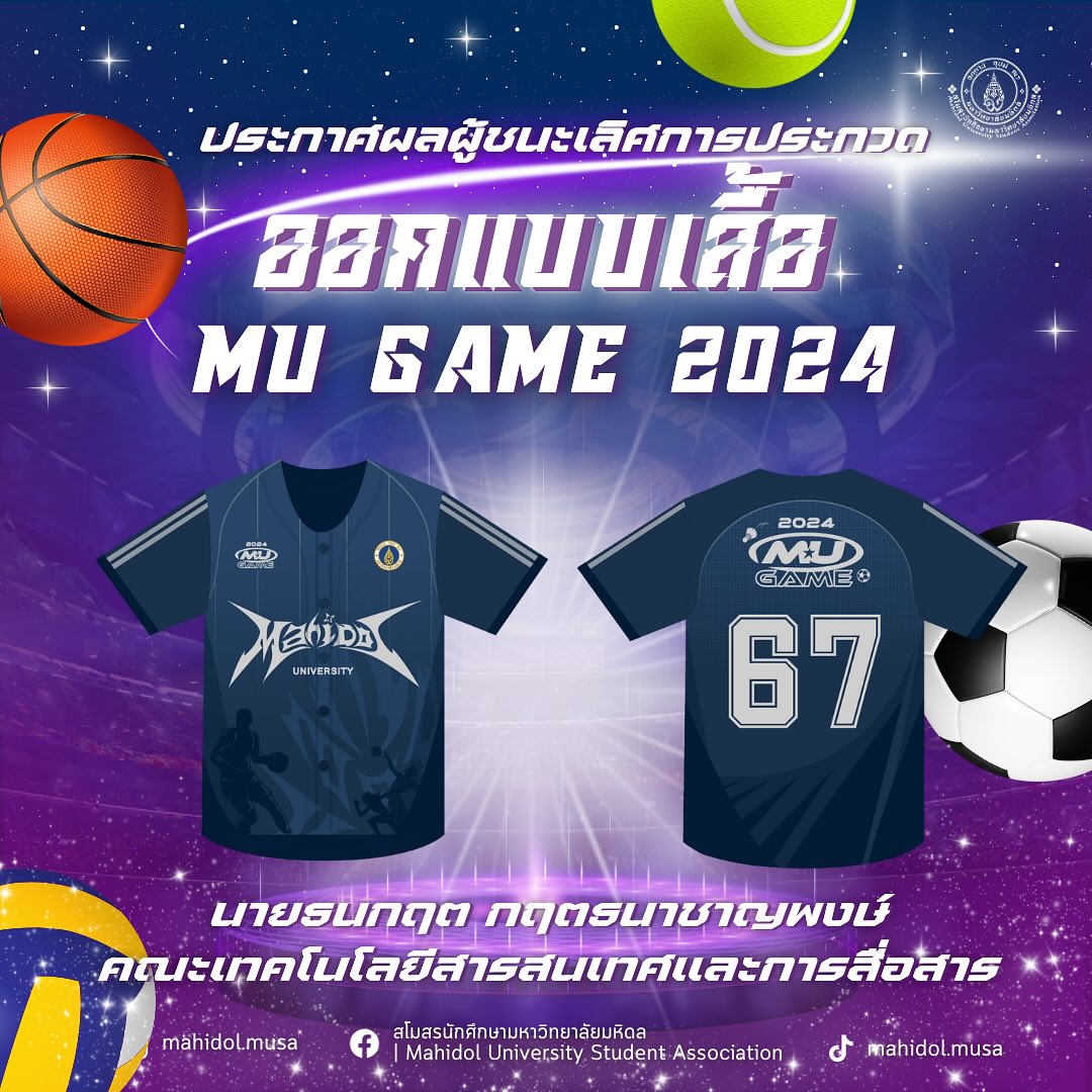 The Faculty of Information and Communication Technology, Mahidol University (ICT Mahidol), extends its congratulations to Mr. Tanakit Kritthanachanpong, a second-year student in the B.Sc. in Digital Science and Technology (DST, Thai Program), on winning first prize in the “MU GAME 2024 T-Shirt Design Contest.”
