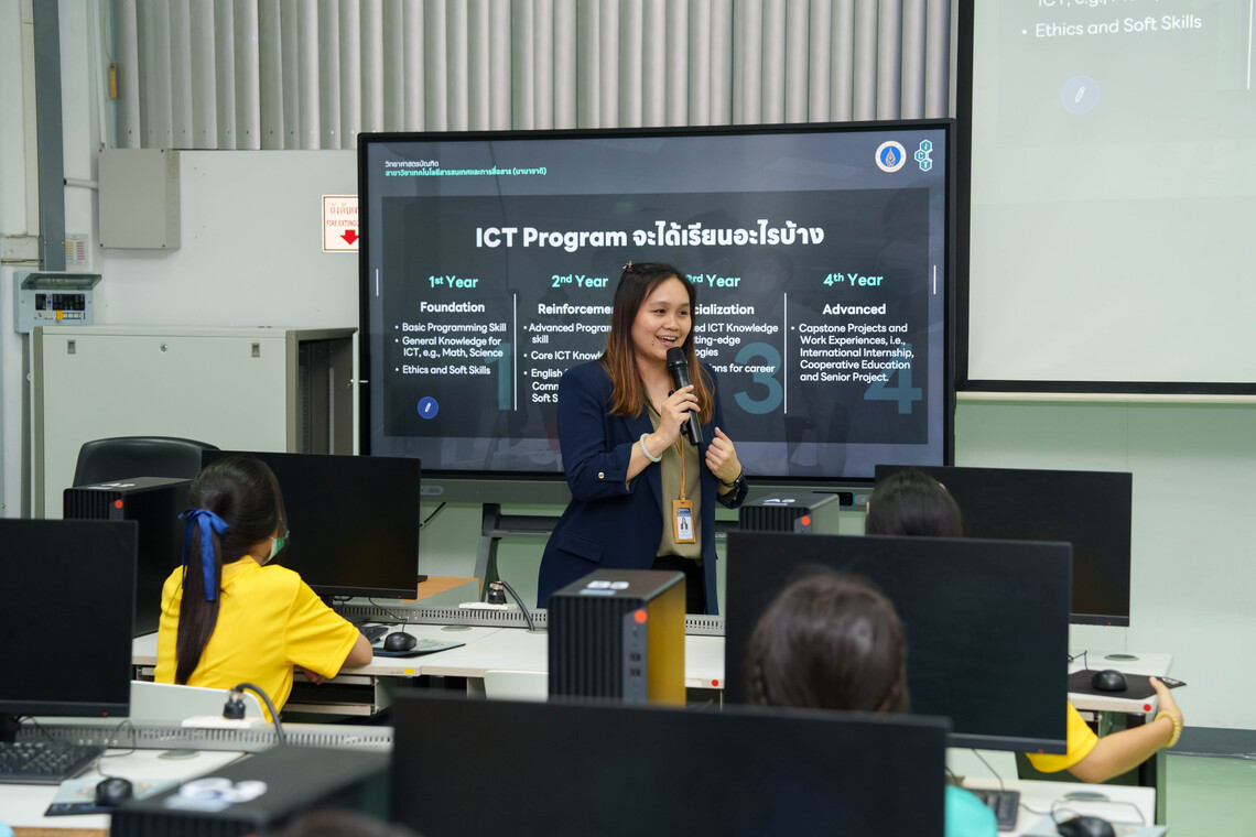 – Asst. Prof. Dr. Jidapa Kraisangka, Assistant Dean for Academic and Curriculum Development, introduced information on the curriculum of Bachelor of Science in Information and Communication Technology (ICT International Program) and B.Sc. in Digital Science and Technology (DST Thai Program). - Training session on “Prompt Engineering for Everyone” by Dr. Tipajin Thaipisutikul, Assistant Dean for Academic Services and Technology Transfer