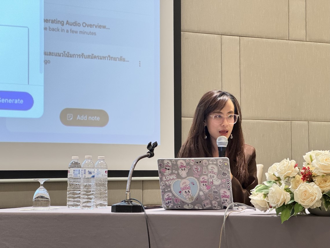 The workshop was honored by the presence of Asst. Prof. Dr. Tipajin Thaipisutikul, Assistant Dean for Academic Services and Technology Transfer; Miss Siriporn Rojanakosol, Assistant Dean for Information Technology; Dr. Sujika Srinuntakul, Assistant Dean for Quality Development and Knowledge Management; and Mr. Prach Chaisiri, Computer Technical Officer from the Information and Systems Division — all of whom served as instructors, sharing their expertise in using digital tools to enhance skills and improve work efficiency. The training was attended by 40 participants from various government agencies, and took place at TK Palace Hotel & Convention, Bangkok.