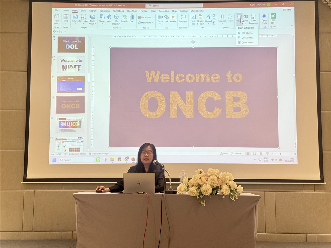 The workshop on “Essential Digital Tools for Workplace (DGA102)” was designed to enhance the understanding and practical skills of participants—particularly government officers— in the effective and efficient use of digital tools. The course focuses on developing three main competencies: creating professional presentations and documents, managing and analyzing data, and integrating AI technologies into workplace processes. The training features hands-on learning with a variety of digital tools, including: